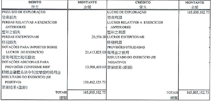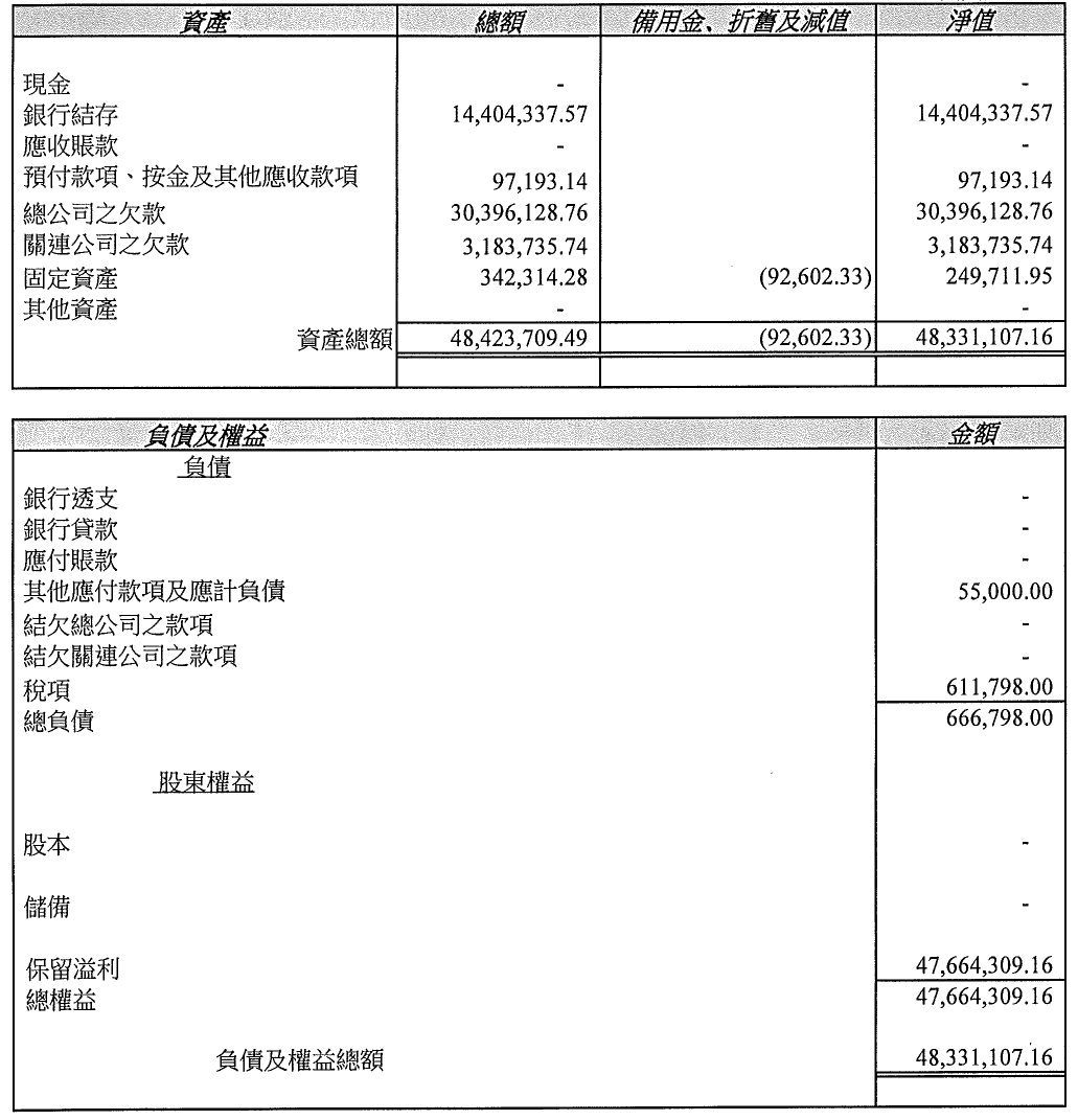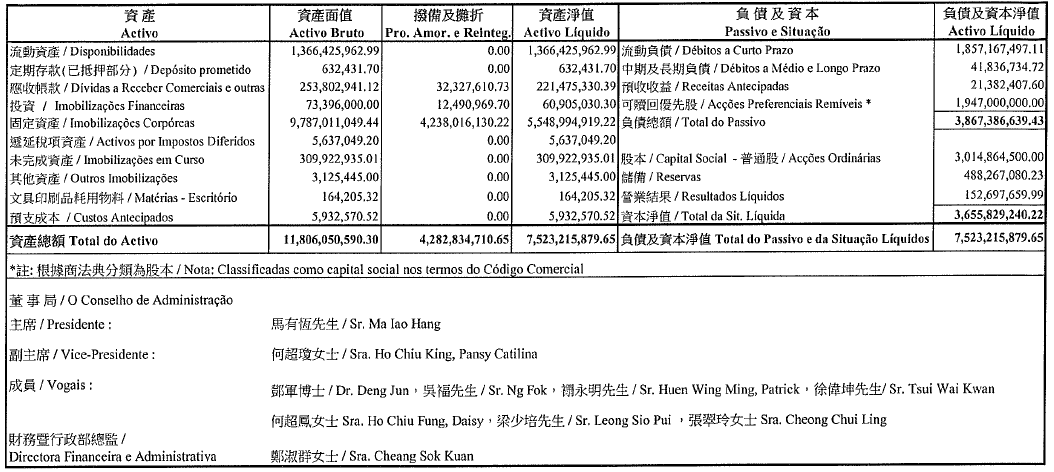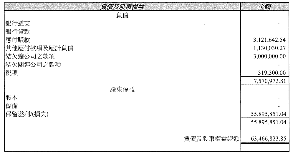 註:上列之資產負債表及營業結果演算是依據經已審核之帳冊編製。