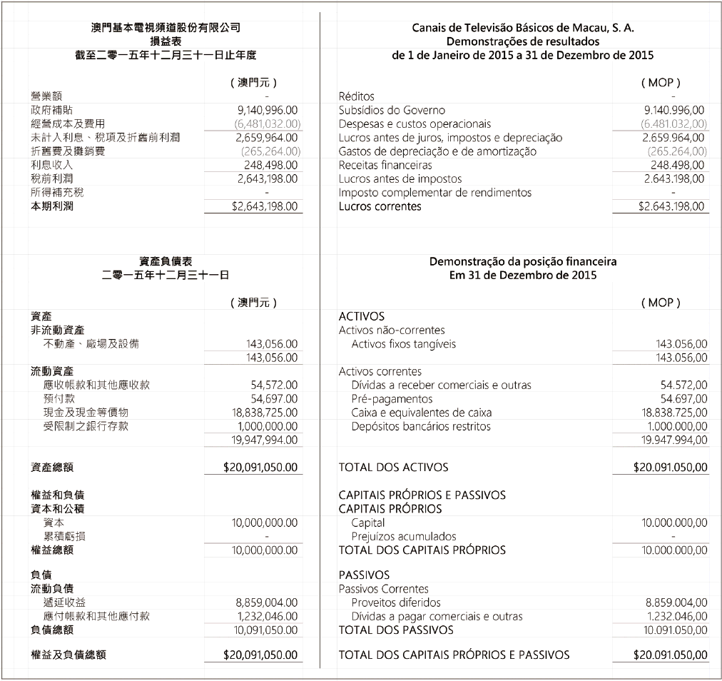 根據核數師報告,中天能源2015年全年天然氣銷售收入為543萬澳門元,天然氣銷售成本945萬澳門元,2015年度虧損3,557萬澳門元,自2006年以來累計虧損 2.13億澳門元。