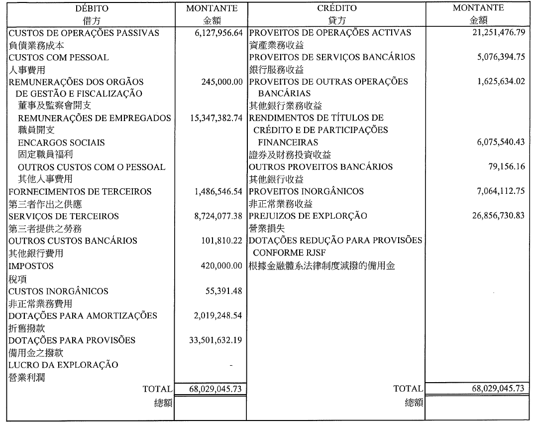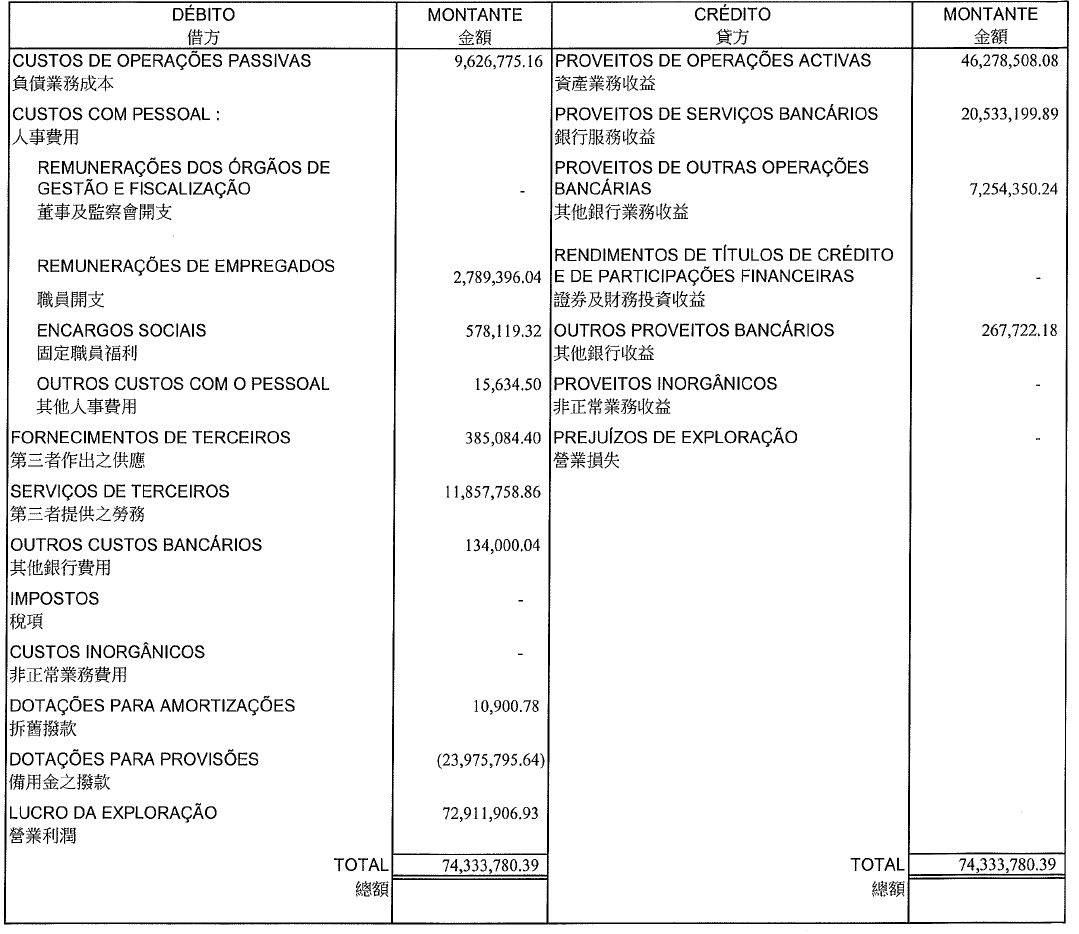 按澳門金融管理局規則之營業結果(盈餘)為澳門幣7,096萬元,較二零一四年度錄得的澳門幣4,439.6萬元增加澳門幣2,656.4萬元。