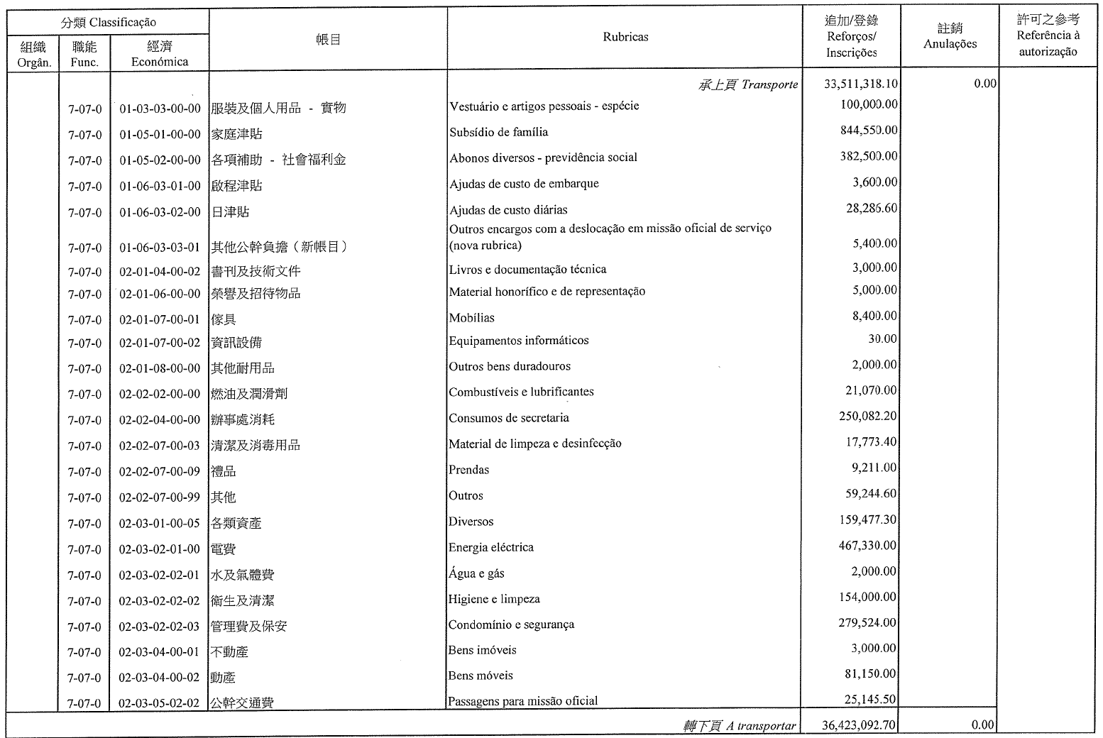 | 1-02-1 | 01 | 01 | 03 | 03 | 00 | Vencimentos (contrato administrativo de provimento) | 2,300,000.00 | |