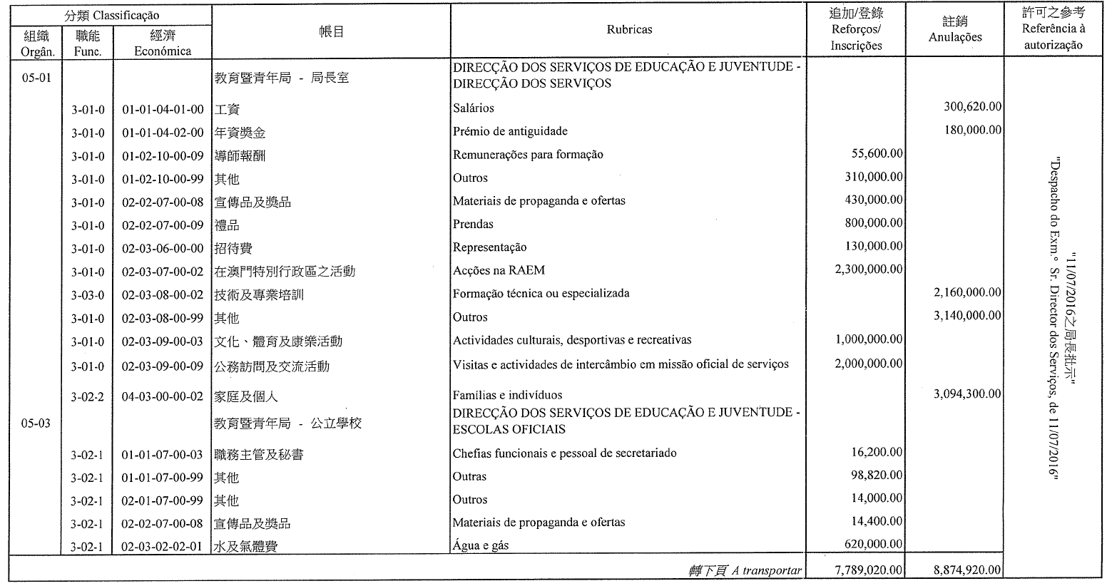 He Yan Ling, Ho Si Hang, Ho Yu Nga, Lam Vai Iam, Lo Tin Yee, Vong Ion Tong, Wong Lai Man, Cheang Man Kit, Lao Hong Wai e Lao Sok Ieng, progridem para adjuntos-técnicos de 1.ª classe, 2.º escalão, índice 320, a partir de 3 de Junho de 2016;