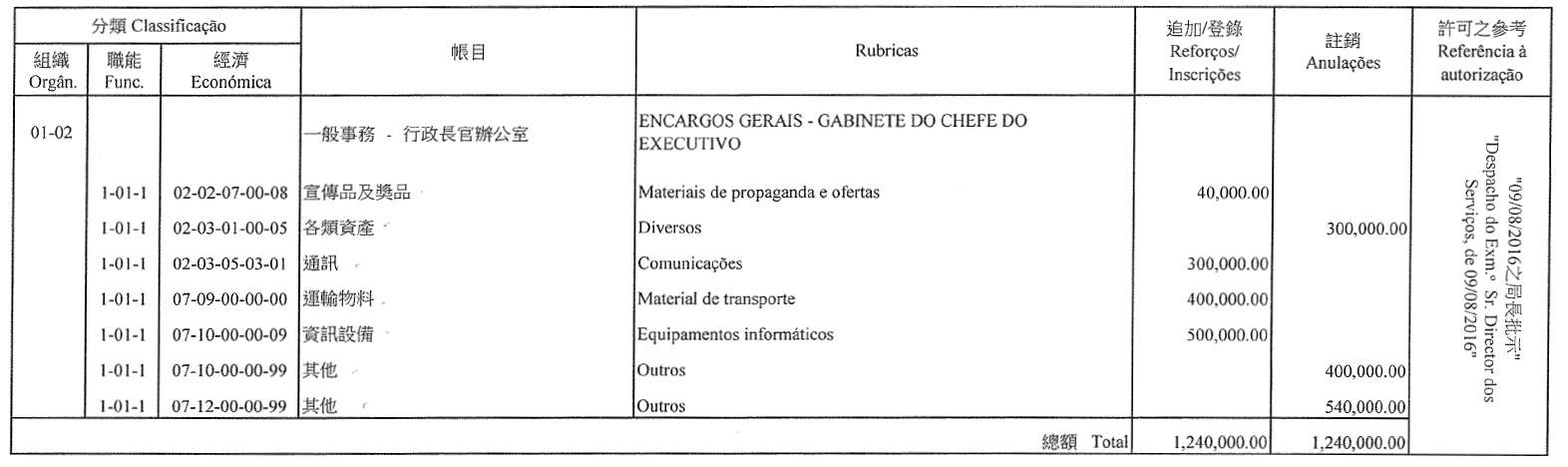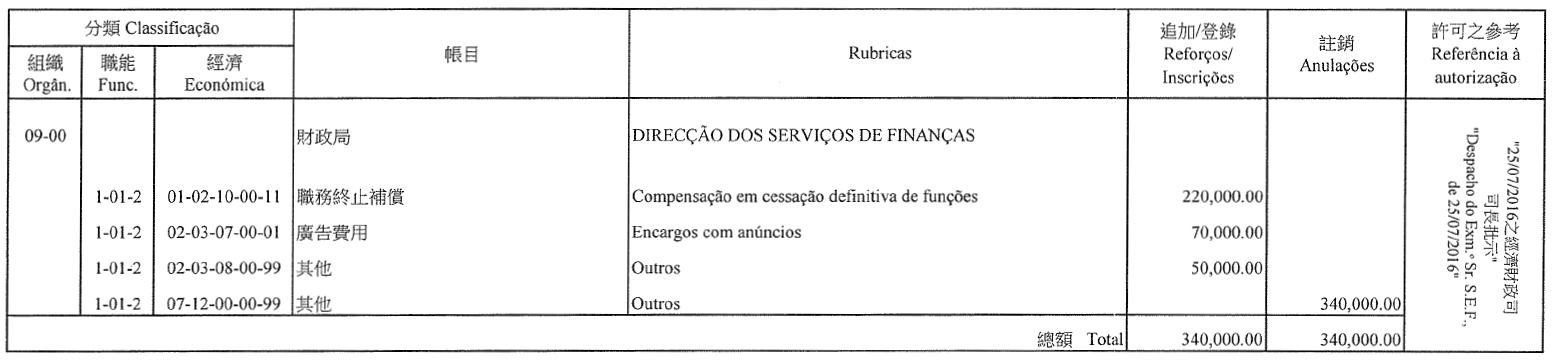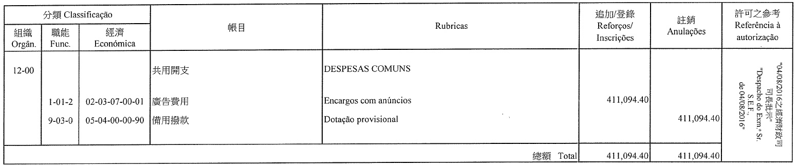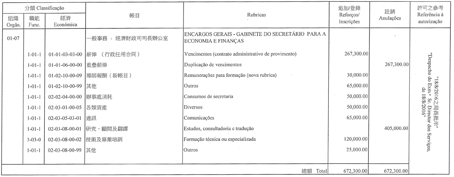 Gabinete do Comissário da Auditoria, aos 25 de Agosto de 2016. — A Chefe do Gabinete, Ho Wai Heng.