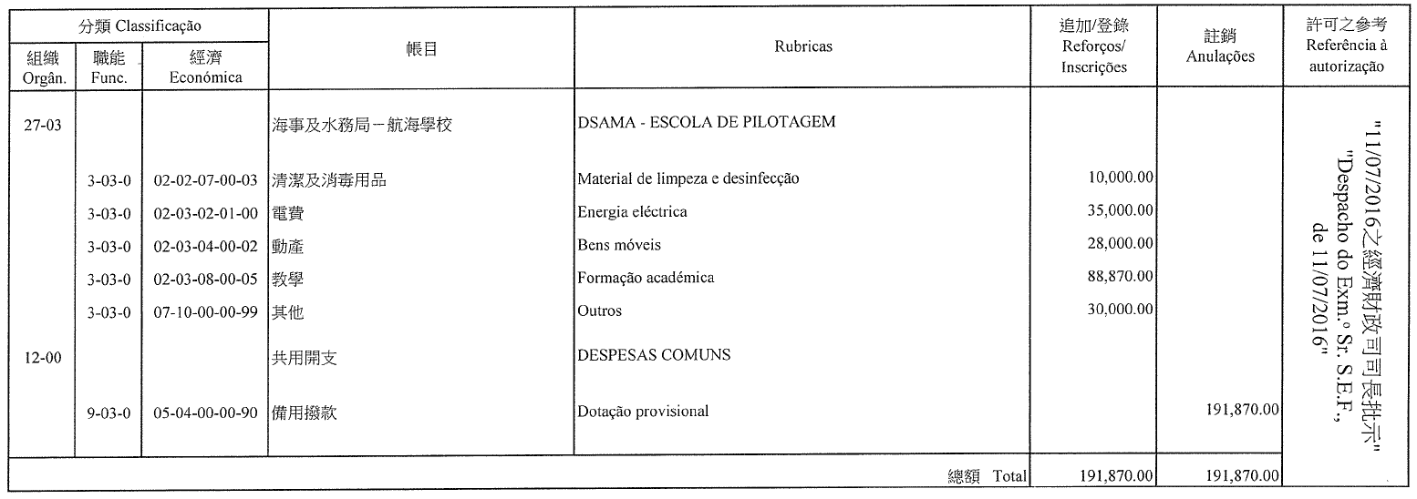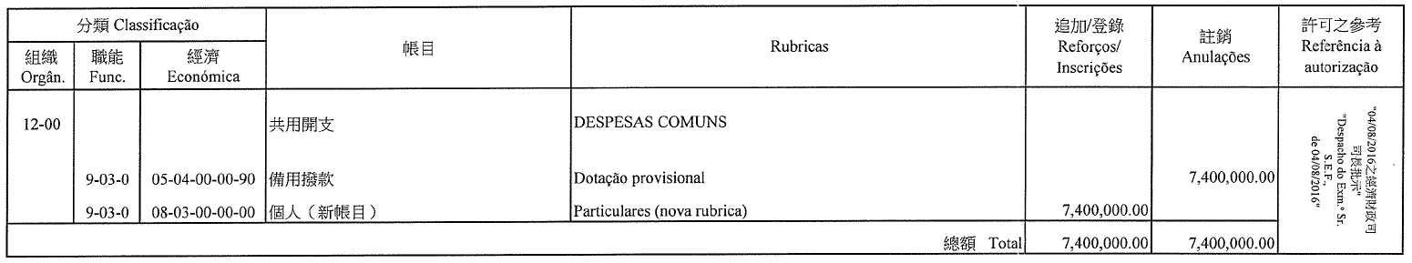 Por despacho de S. Ex.ª o Chefe do Executivo, de 23 de Agosto de 2016:
