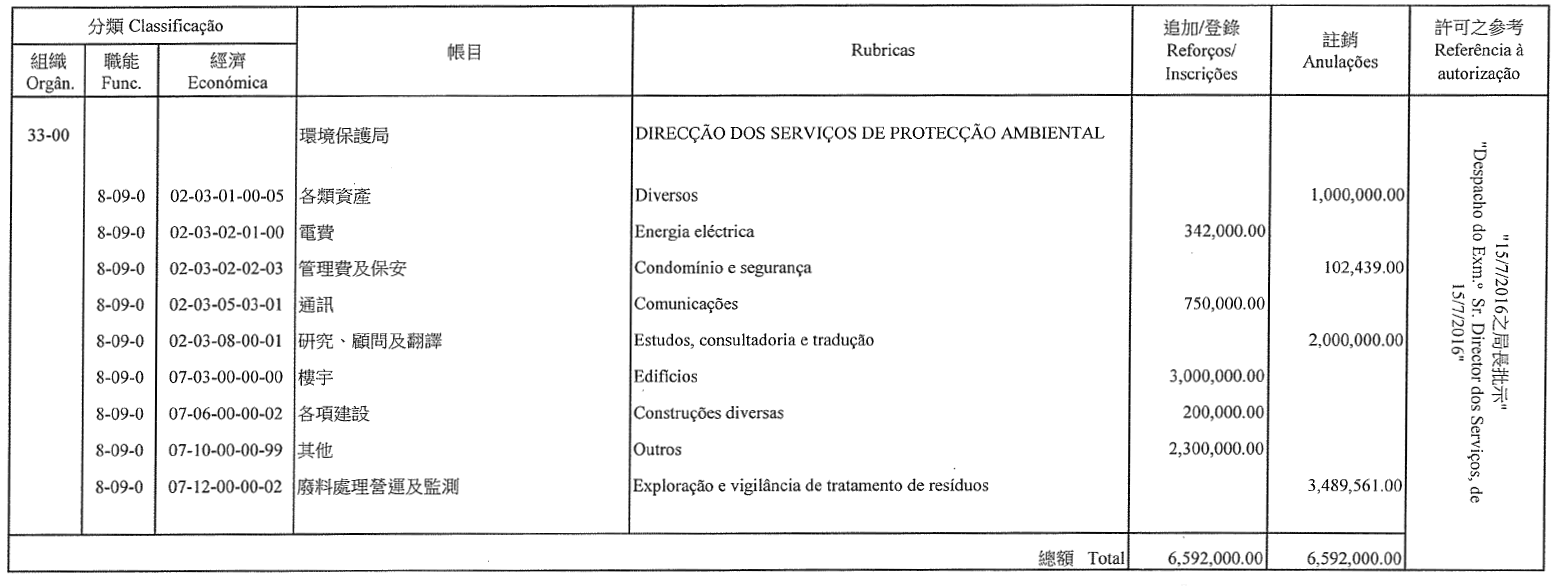 Direcção dos Serviços de Protecção Ambiental, aos 23 de Agosto de 2016. — O Director dos Serviços, Tam Vai Man.