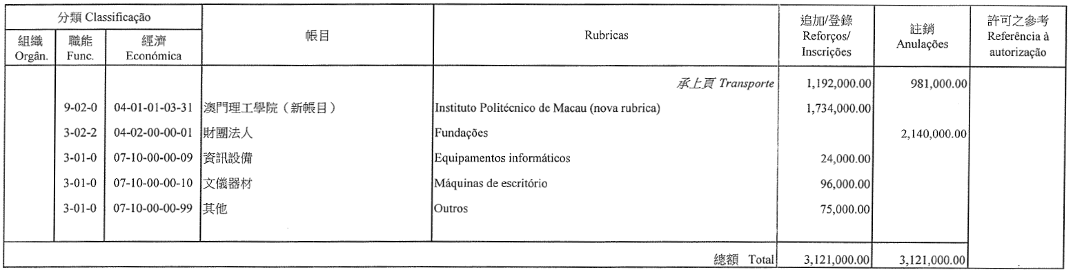 | 1-02-1 | 02 | 03 | 05 | 03 | 01 | Comunicações | 350,000.00 | |