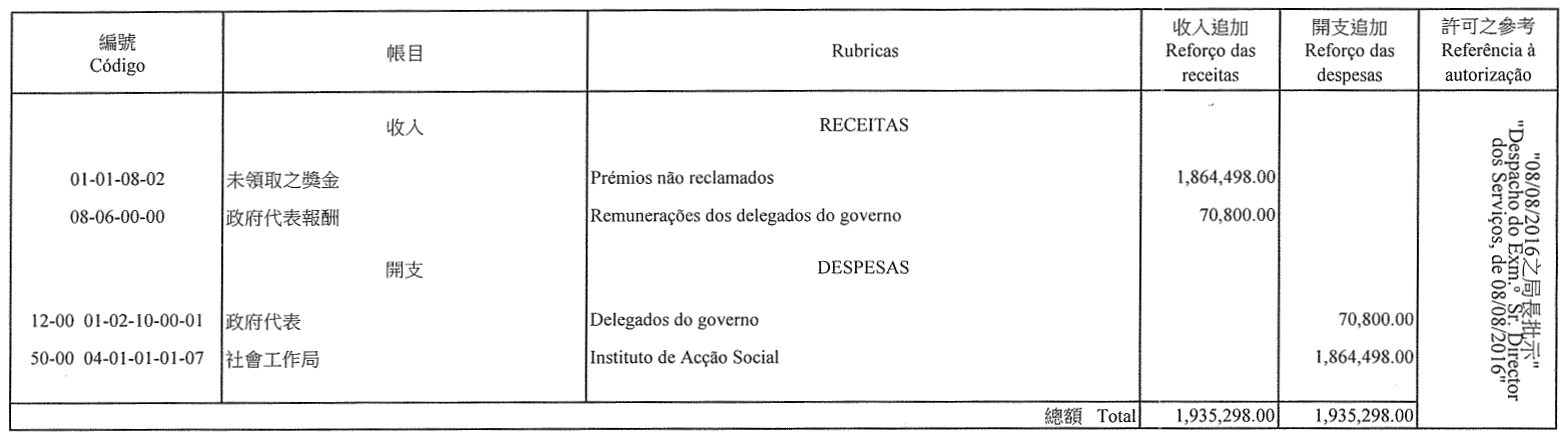 Gabinete do Secretário para os Assuntos Sociais e Cultura, aos 25 de Agosto de 2016. — O Chefe do Gabinete, Ip Peng Kin.