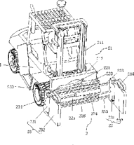 [57] ºKn : ¥»¹ê¥Î·s«¬¯A¤Î¤@ºØ±ÛÂড¤e¨®¡A¥]¬A¦³¨®Åé©M³]©ó¨®Åé«e¤èªº¤É°±ÛÂ২«ù¸Ë¸m¡F©Òz¤É°±ÛÂ২«ù¸Ë¸m¥]¬A¦³¤É°¾÷ºc¡B±ÛÂà¾÷ºc©M§¨«ùªO¡A©Òz¤É°¾÷ºc¦w¸Ë©T©w¦b¨®Å骺«eºÝ¡A©Òz±ÛÂà¾÷ºc¦w¸Ë©T©w¦b¤É°¾÷ºcªº¤É°°òªO¤W¡A©Òz§¨«ùªO¥i¬Û¹ï²¾°Ê¦a¦w¸Ë¦b±ÛÂà¾÷ºcªº±ÛÂà°òªOªº¥ª¥k¨â°¼¡C³o¼Ë¡A¥»¹ê¥Î·s«¬±ÛÂড¤e¨®§Y¥i±Nª««~§¨°_¡B±ÛÂà¡A¥H§¹¦¨¤£¦P¤u§@¡A¥\¯à±j¤j¡AÀ³¥Î¼sªx¡A¦P®É§¨«ùªO³q¹L§¨«ùªo¬û¥i½Õ¸`¦a³]©ó±ÛÂà°òªOªº¥ª¥k¨â°¼¡A§Y¥i§¨«ù¤£¦P¤Ø¤oªºª««~¡A³q¥Î©Ê±j¡A¨Ï¥ÎÆF¬¡¡B¤è«K¡A§¨«ù®ÄªGéw¡A¦Ó¥Bµ²ºc²³æ¡B¥©§®¡A¥Í²£¥[¤u®e©ö¡A¥«³õÄvª§¤O±j¡A®e©ö´¶¤Î¡B±À¼sÀ³¥Î¡C