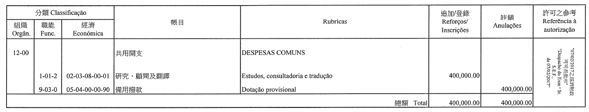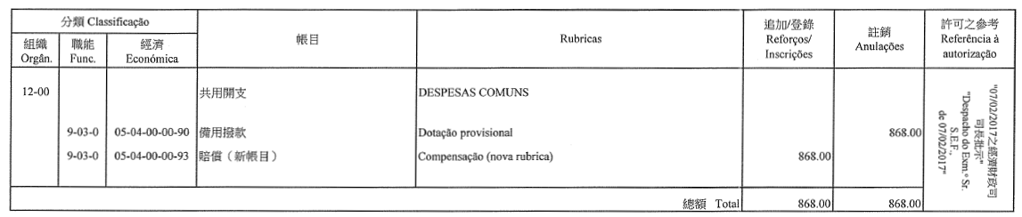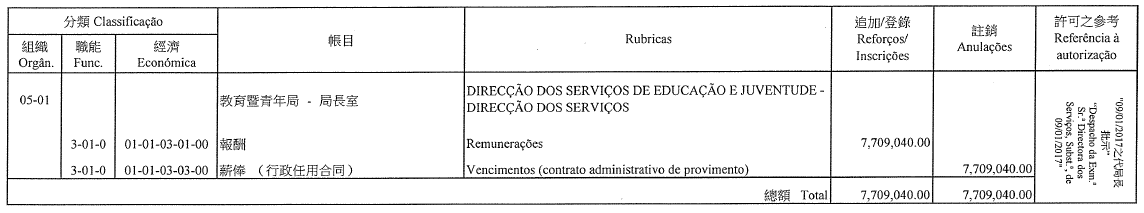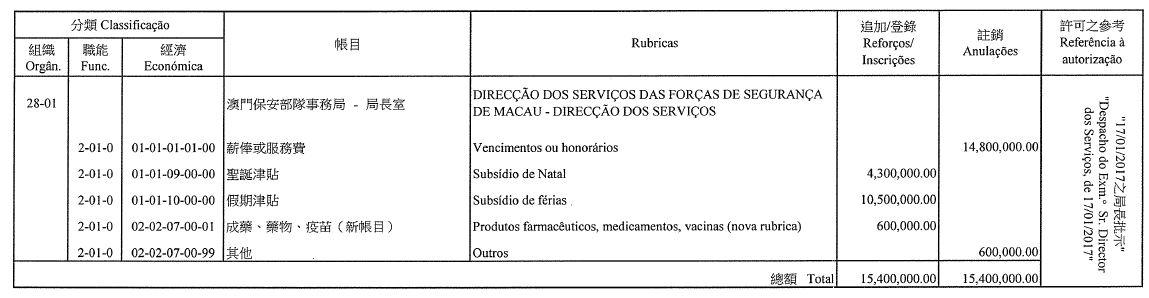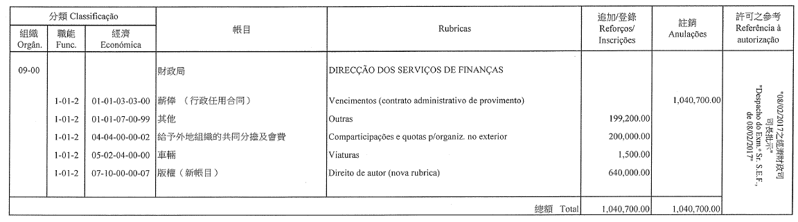摘錄自本局行政暨財政廳廳長於二零一七年二月二十一日作出的批示: