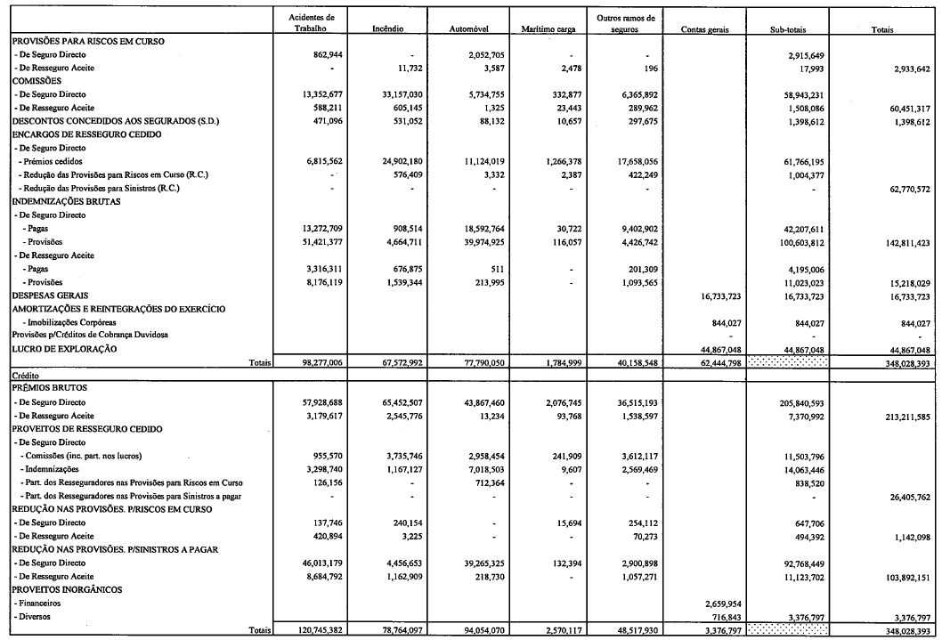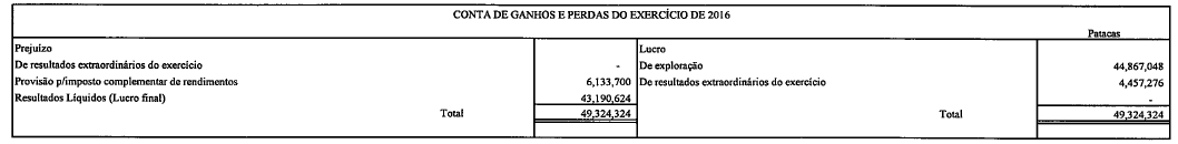 Conta de Exploração do Exercício de 2016 (Ramos Gerais)