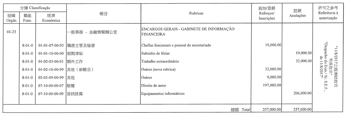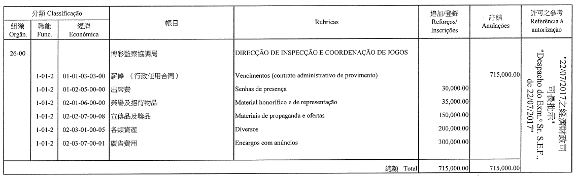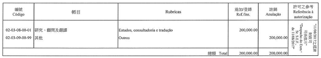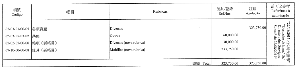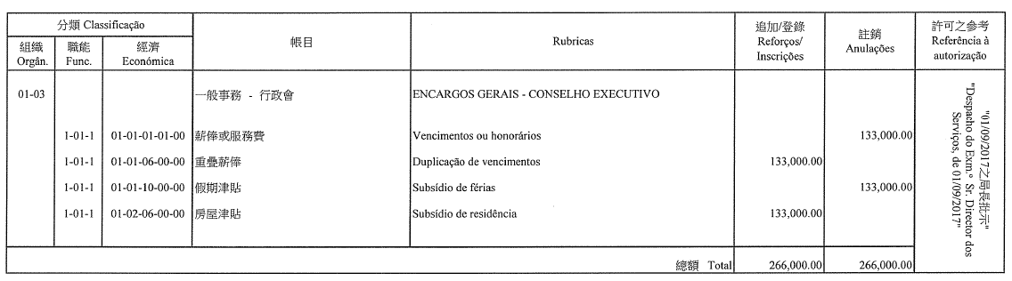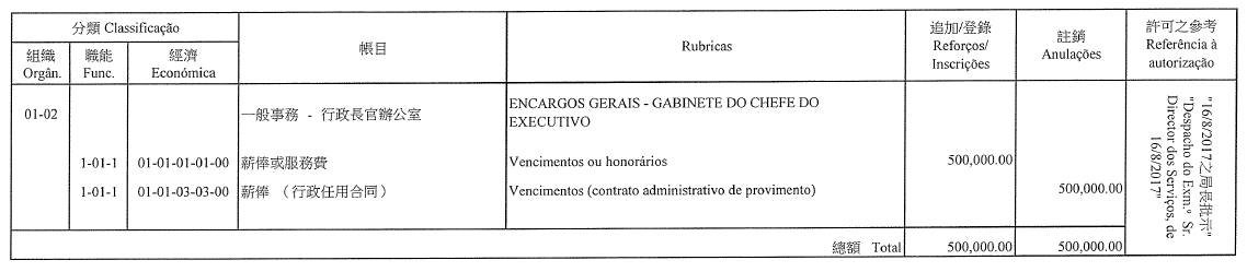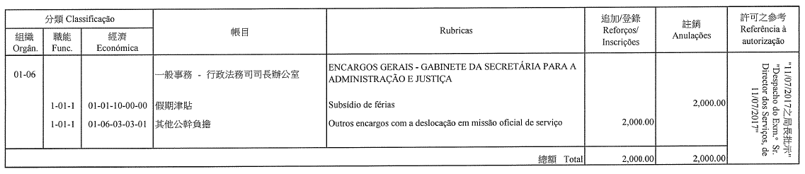 Por despacho da chefe do Gabinete do Chefe de Executivo, substituta, de 13 de Julho de 2017: