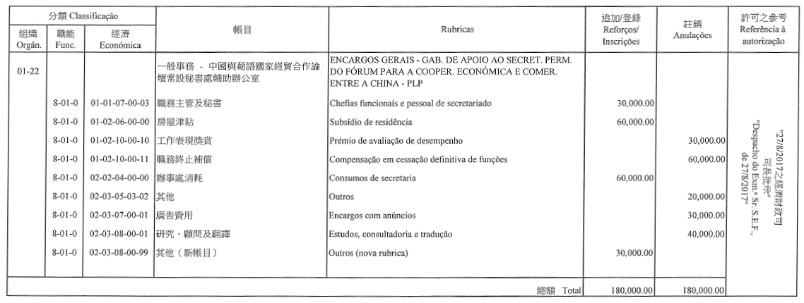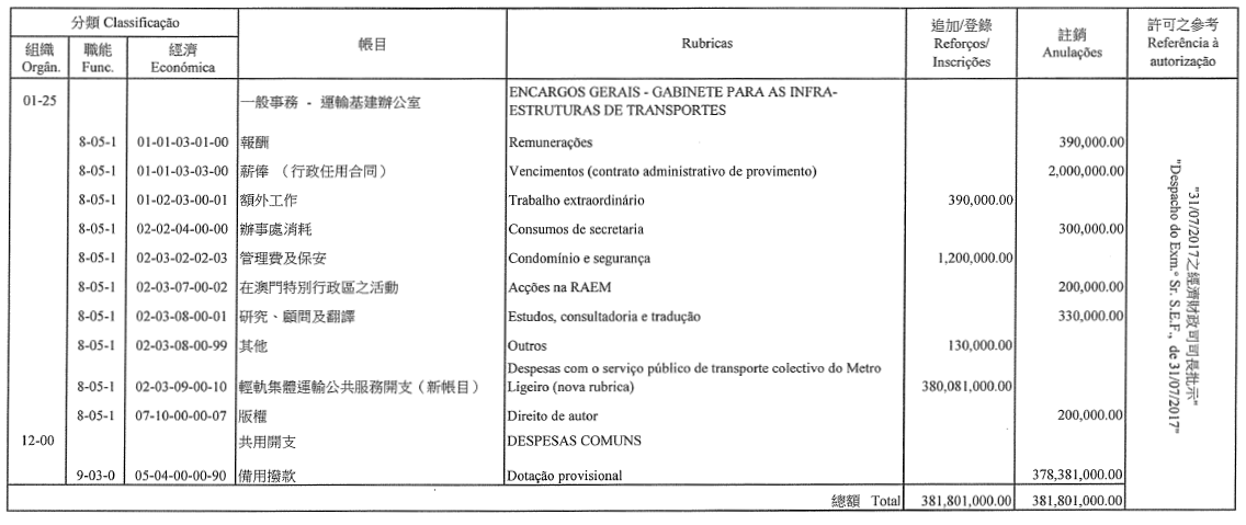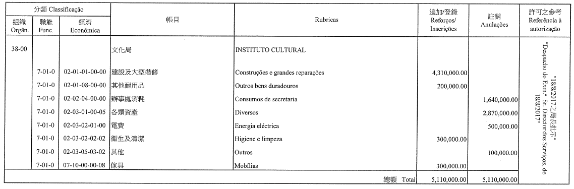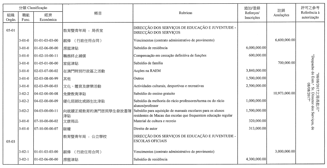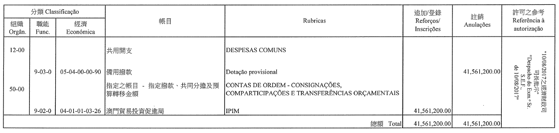 Por despacho de S. Ex.ª o Chefe do Executivo, de 18 de Agosto de 2017:
