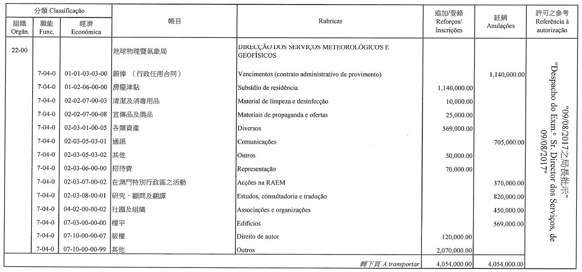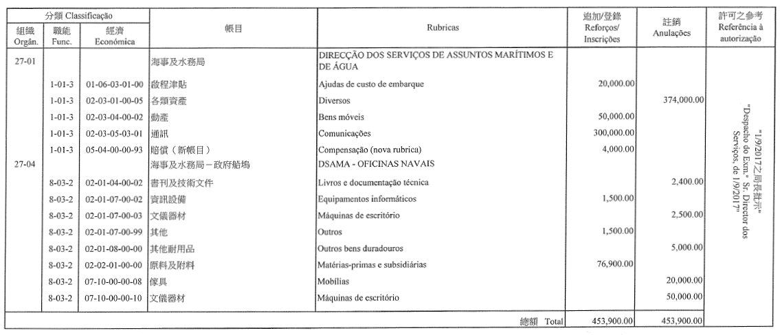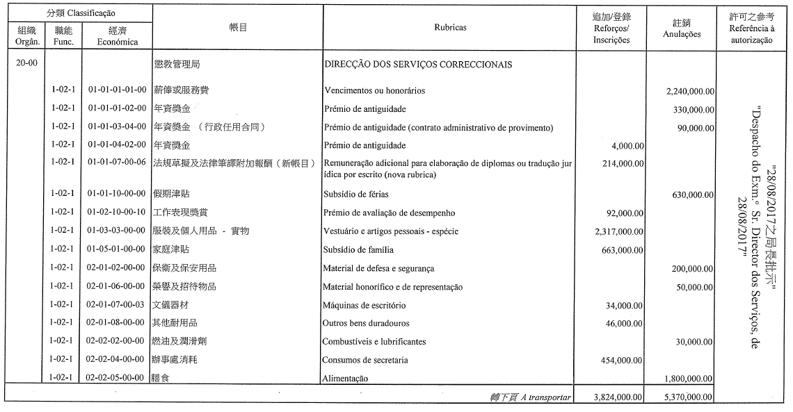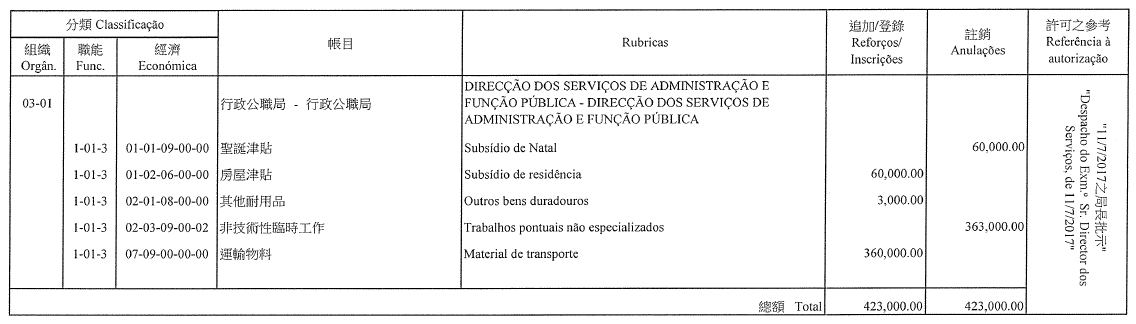 Lin Zhihang — renovado o contrato administrativo de provimento, pelo período de um ano, como motorista de ligeiros, 1.º escalão, índice 150, nestes Serviços, ao abrigo dos artigos 4.º e 6.º da Lei n.º 12/2015, a partir de 5 de Outubro de 2017.