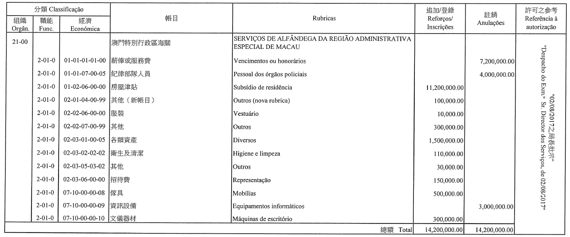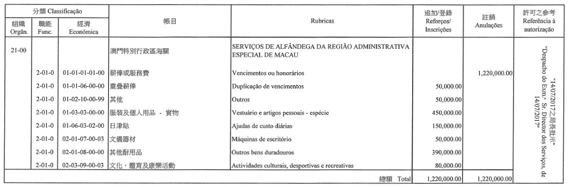 Por despachos do director-geral dos Serviços de Alfândega, de 6 de Setembro de 2017: