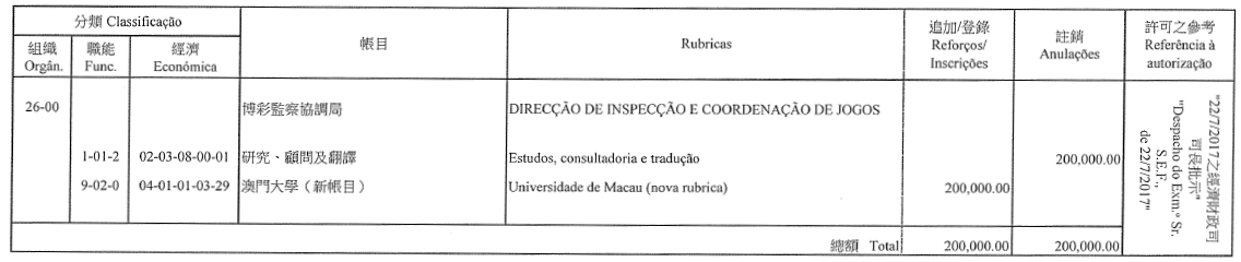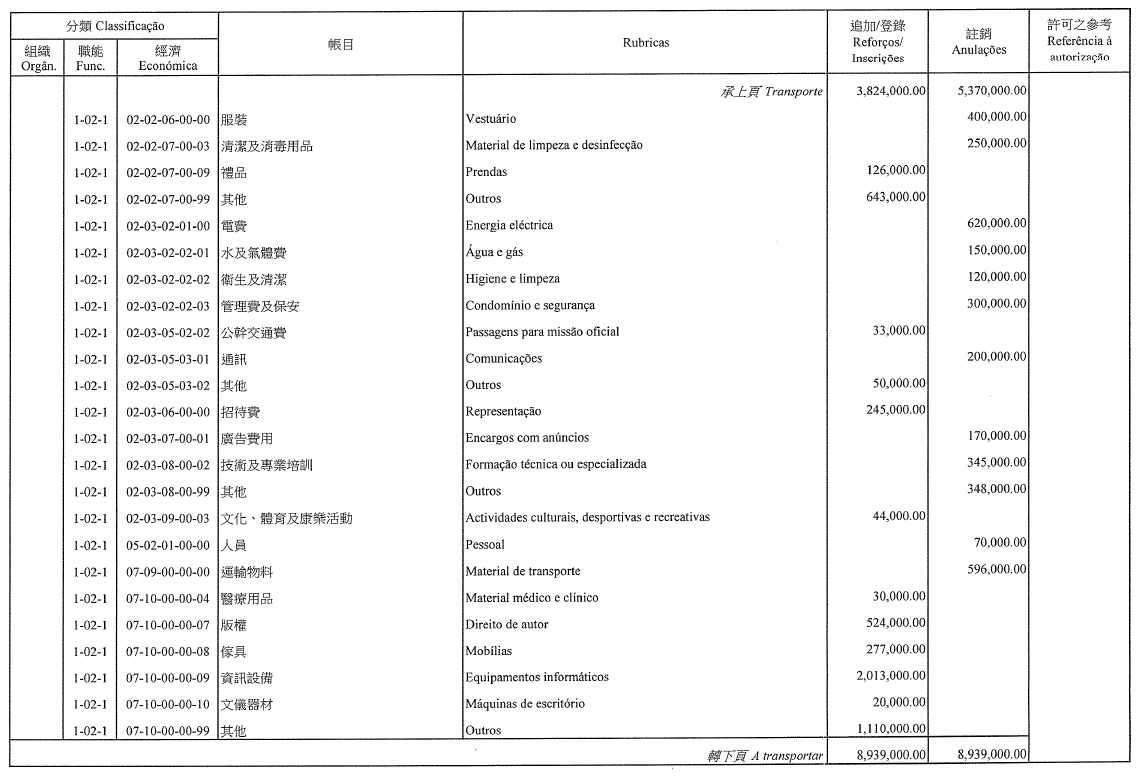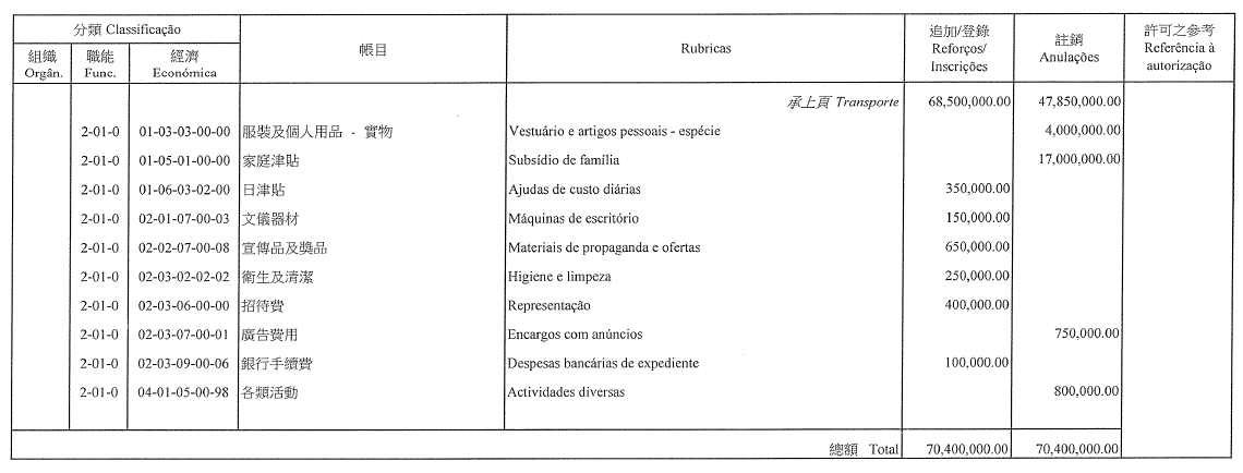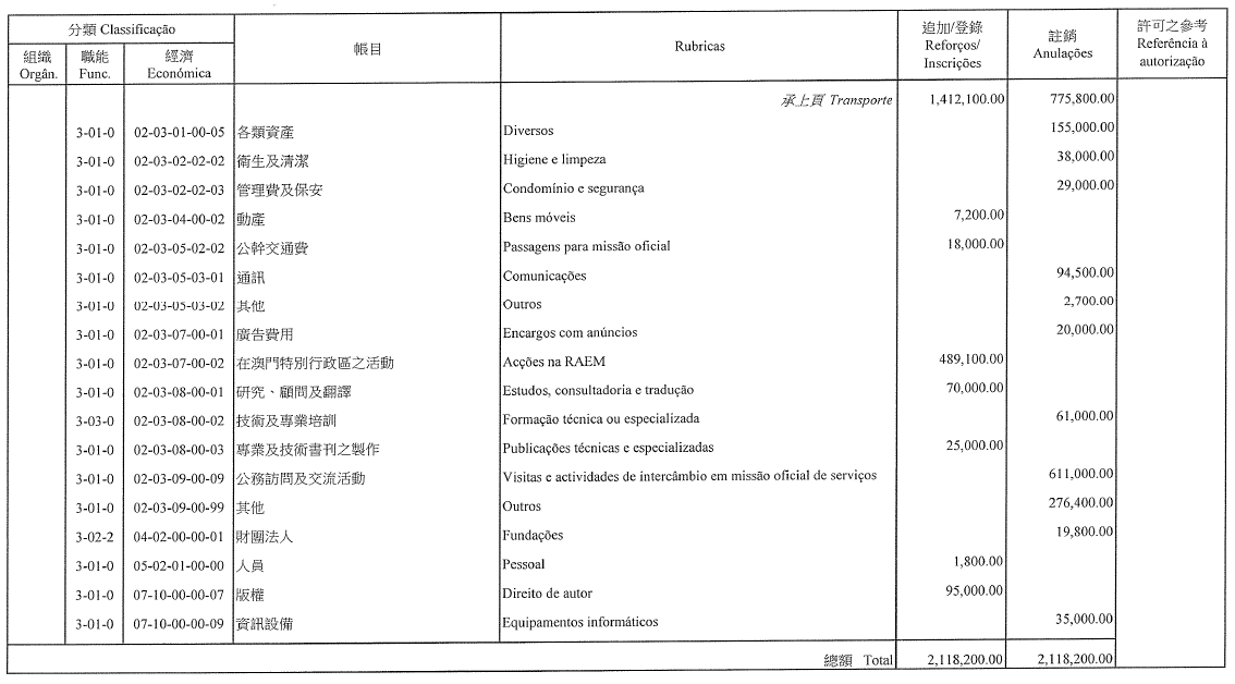 1.ª alteração ao orçamento individualizado da Maratona Internacional de Macau