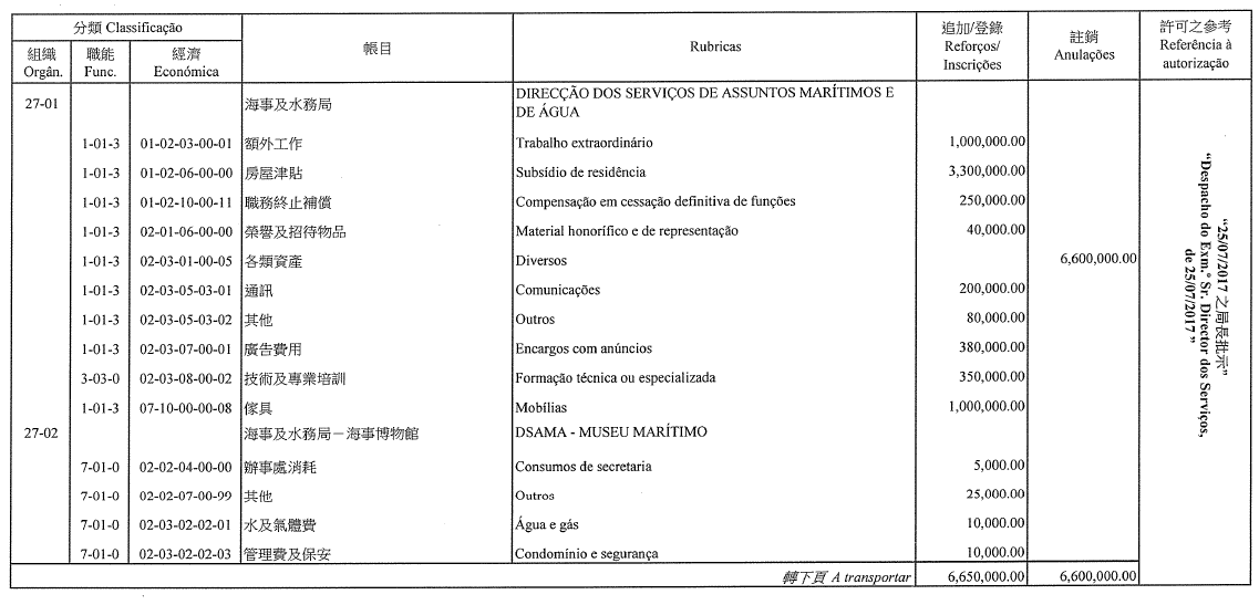 Por despacho do director dos Serviços, de 2 de Agosto de 2017: