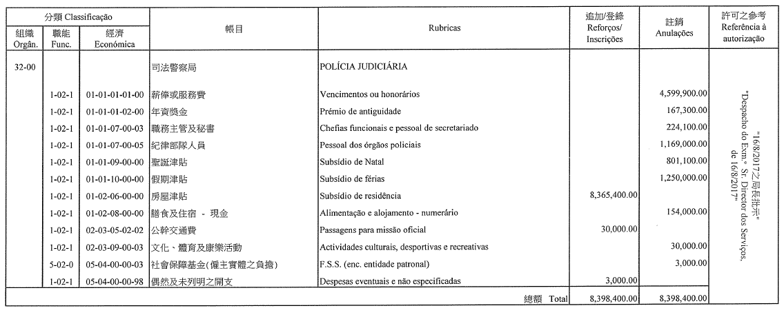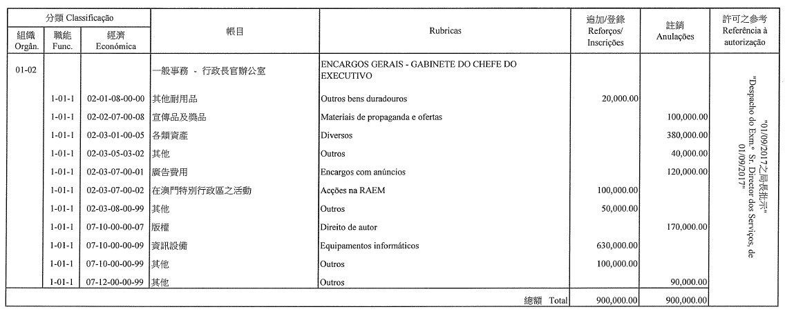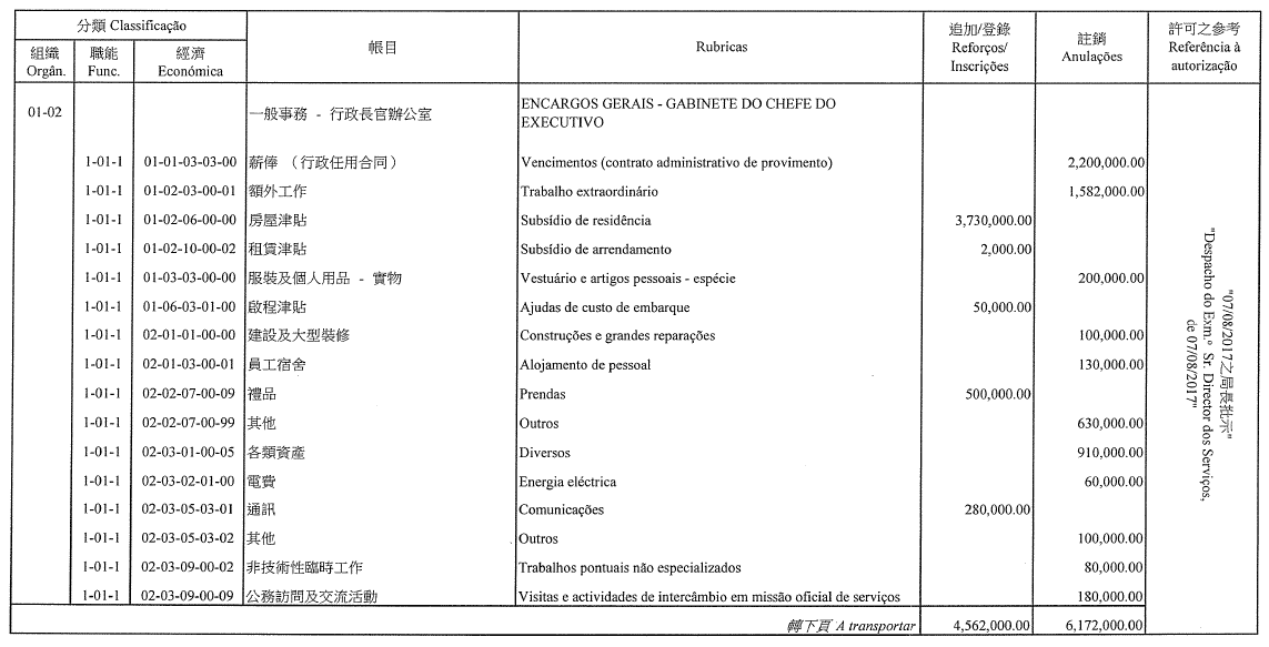 Por despacho de S. Ex.ª o Chefe do Executivo, de 9 de Agosto de 2017: