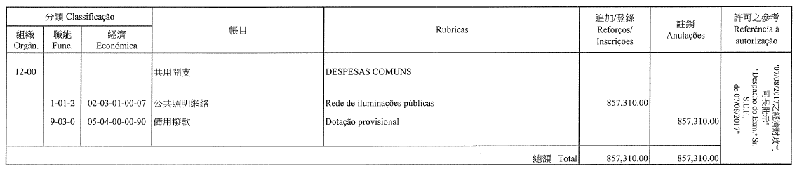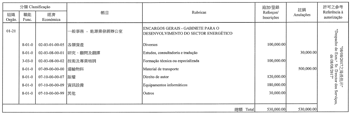 Por despacho de S. Ex.a o Chefe do Executivo, de 18 de Agosto de 2017:
