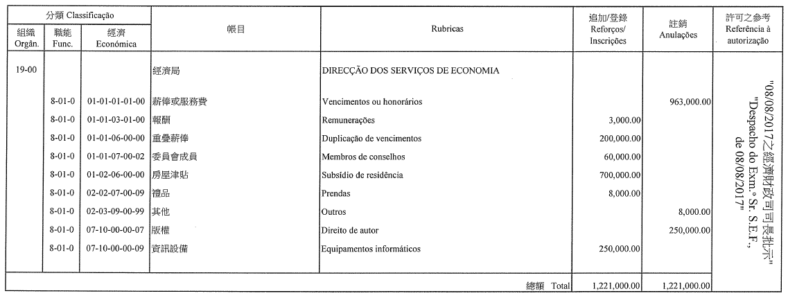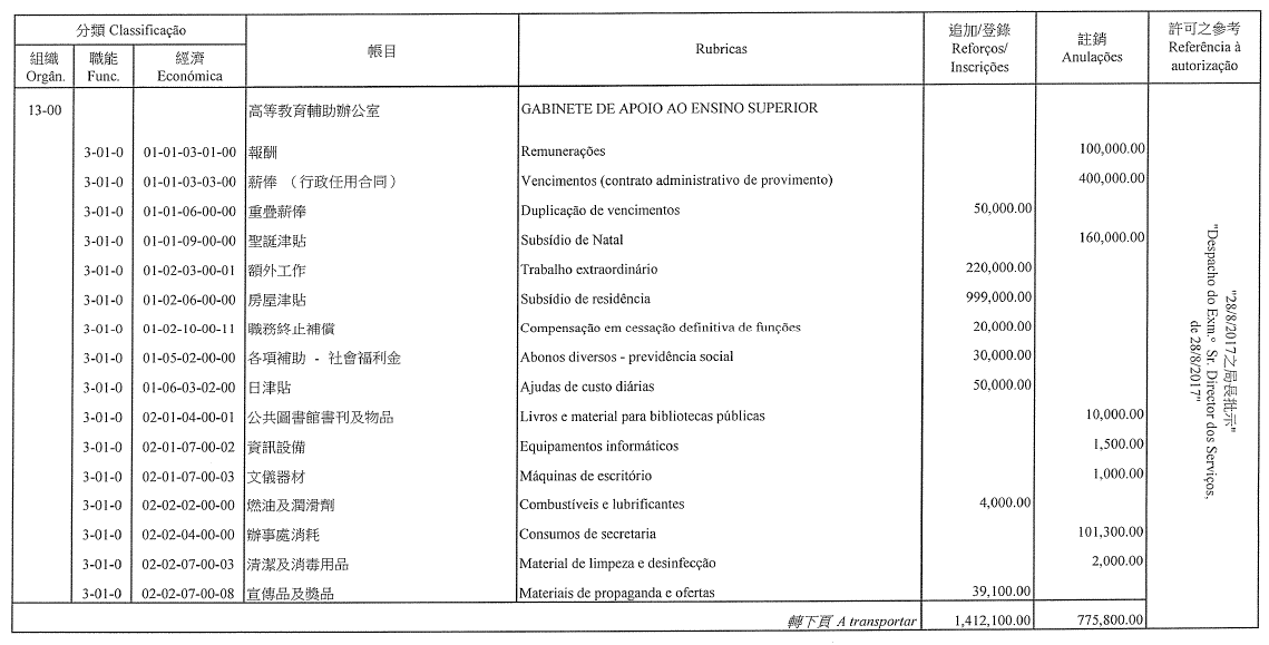 Chong Kin Man, Eduardo Guerreiro Ho e Leong Pui I, para técnicos principais, 2.º escalão, índice 470, a partir de 13 de Setembro de 2017;