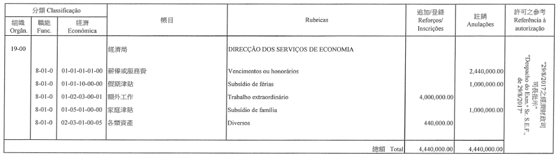 Gabinete do Secretário para a Economia e Finanças, aos 6 de Setembro de 2017. — A Chefe do Gabinete, Teng Nga Kan.