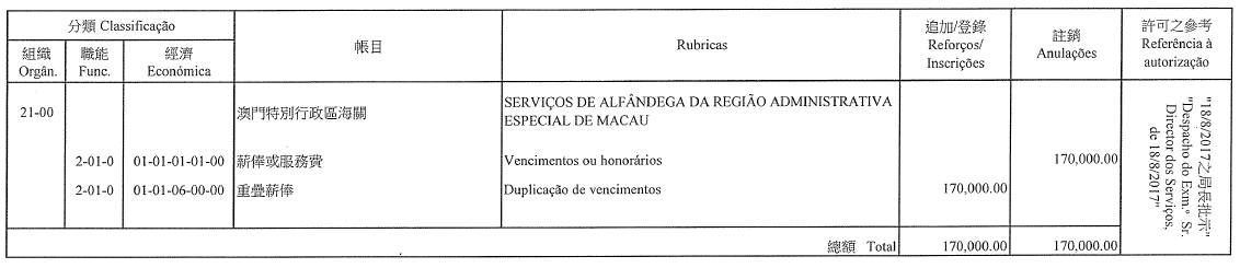 Wong Sut Tou, progride para auxiliar, 4.º escalão, índice 140, a partir de 14 de Setembro de 2017.