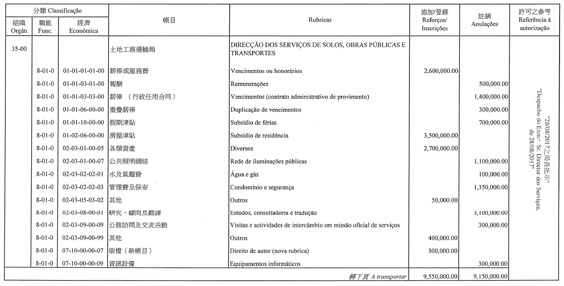 Direcção dos Serviços de Solos, Obras Públicas e Transportes, aos 7 de Setembro de 2017. — O Director dos Serviços, Li Canfeng.