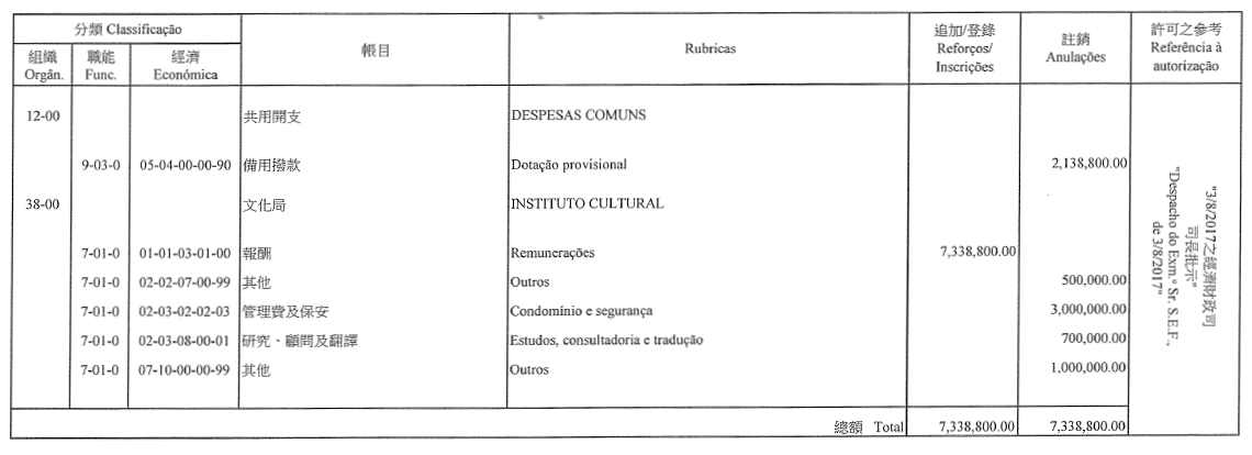 Comissariado contra a Corrupção, aos 7 de Setembro de 2017. — O Chefe do Gabinete, Sam Vai Keong.