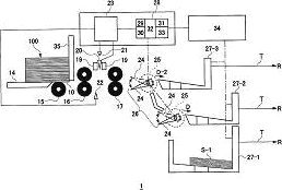 [57] Resumo : 本發明的成套紙牌的製作裝置(1)具有紙牌讀取裝置(23),其通過讀取撲克牌(10)的花色及大小的標誌或撲克牌所帶有的表示花色及大小的識別用的代碼(種類代碼信息(106)),對從紙牌載置台(14)送出的撲克牌(10)的花色及大小進行判別,並配置有:多個分類片(24),其用於切換花色及大小被判別出的撲克牌(10)的前進方向;分類裝置(26);其具有旋轉驅動該分類片(24)的旋轉螺綫管(25);和多個紙牌儲存器(27-1、27-2、27-3),其分別儲存通過分類裝置(26)而切換了前進方向的撲克牌(10)。由此,能够提供不多不少地自動製作在紙牌遊戲中使用的規定副數的紙牌的成套紙牌的製作裝置。