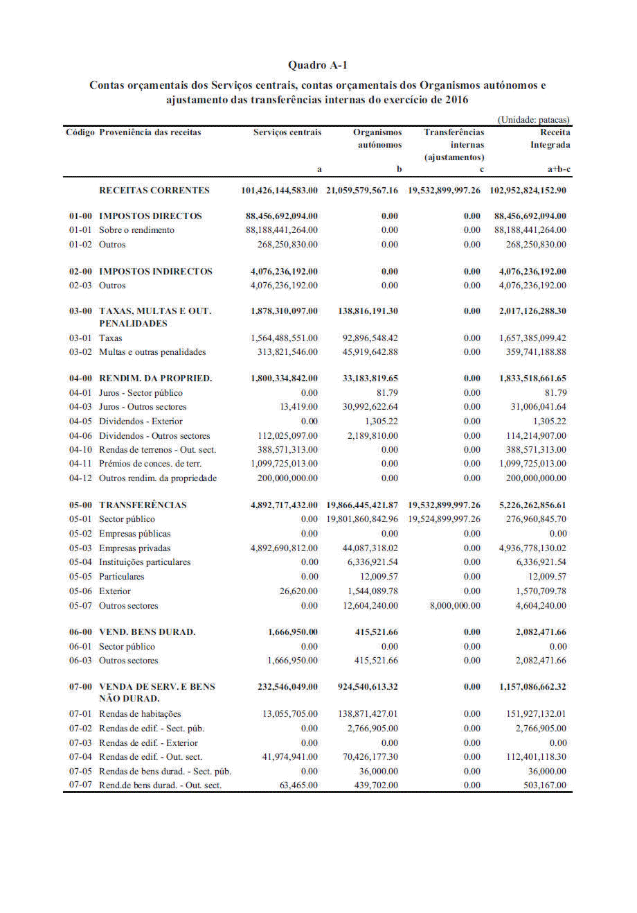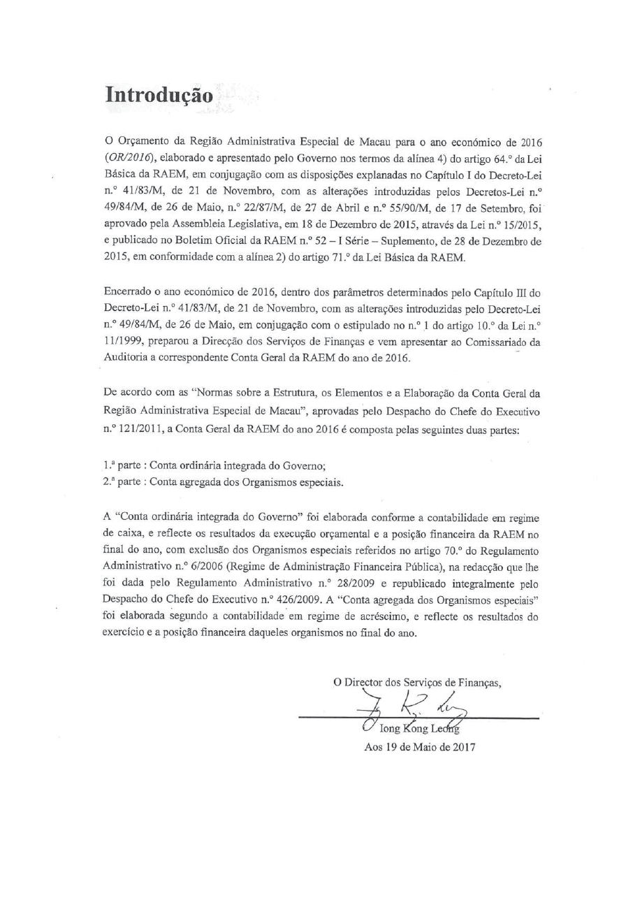 Conta Geral da RAEM do ano 2016