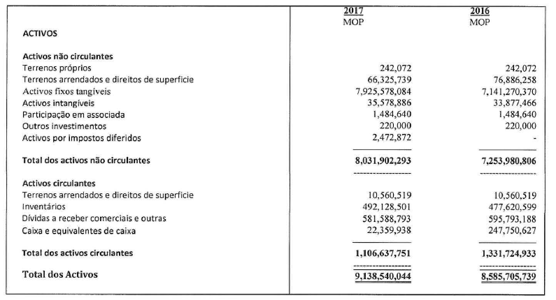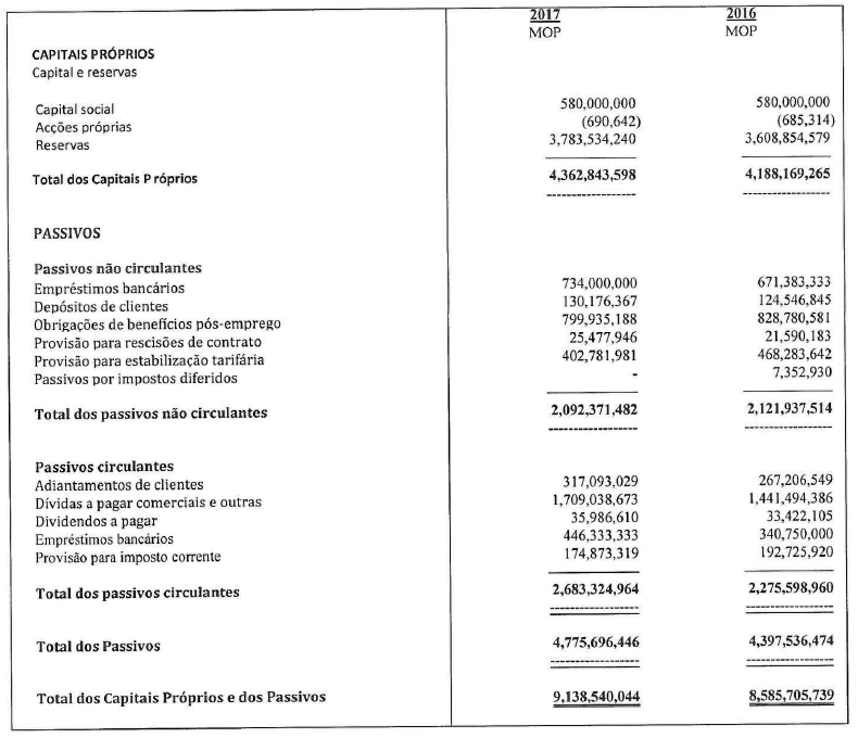 Auditámos as demonstrações financeiras consolidadas da Sociedade e do Grupo referentes ao exercício findo em 31 de Dezembro de 2017 de acordo com as Normas de Auditoria e Normas Técnicas de Auditoria emitidas pelo Governo da Região Administrativa Especial de Macau, e expressámos a nossa opinião sem reservas sobre estas demonstrações financeiras, no relatório de 28 de Março de 2018.