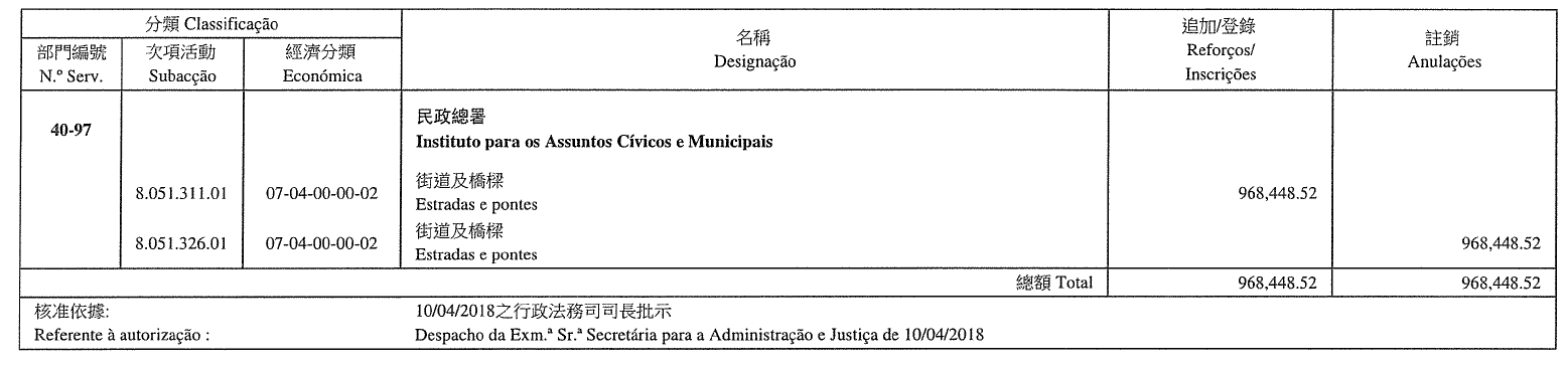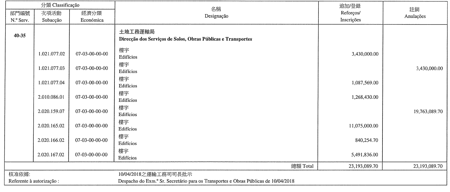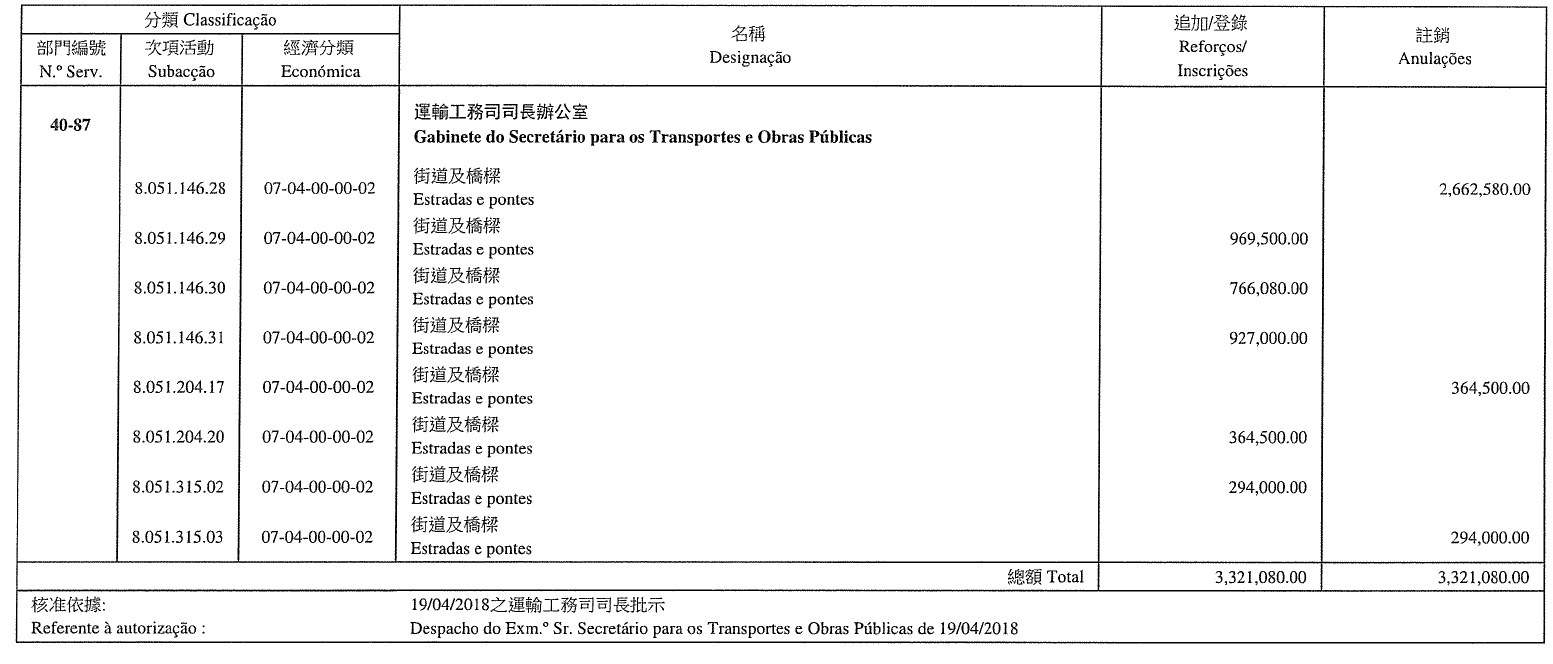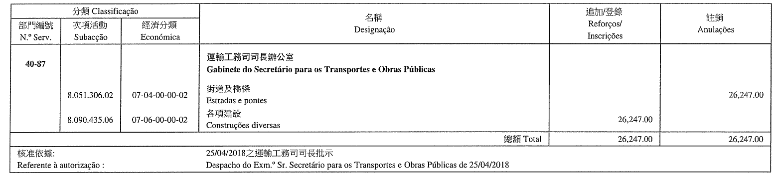 Direcção dos Serviços de Solos, Obras Públicas e Transportes, aos 15 de Maio de 2018. — O Director dos Serviços, Li Canfeng.
