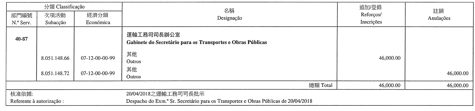 Por deliberações da Ex.ma Mesa da Assembleia Legislativa, de 10 de Maio de 2018: