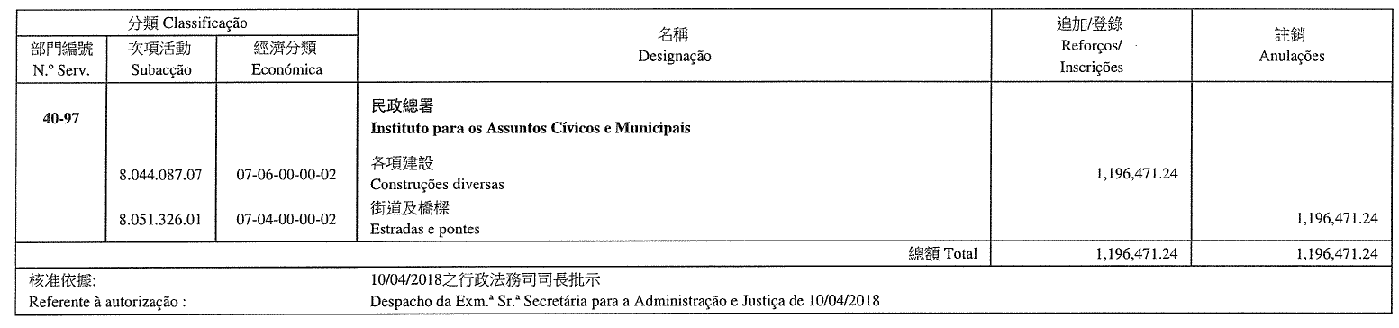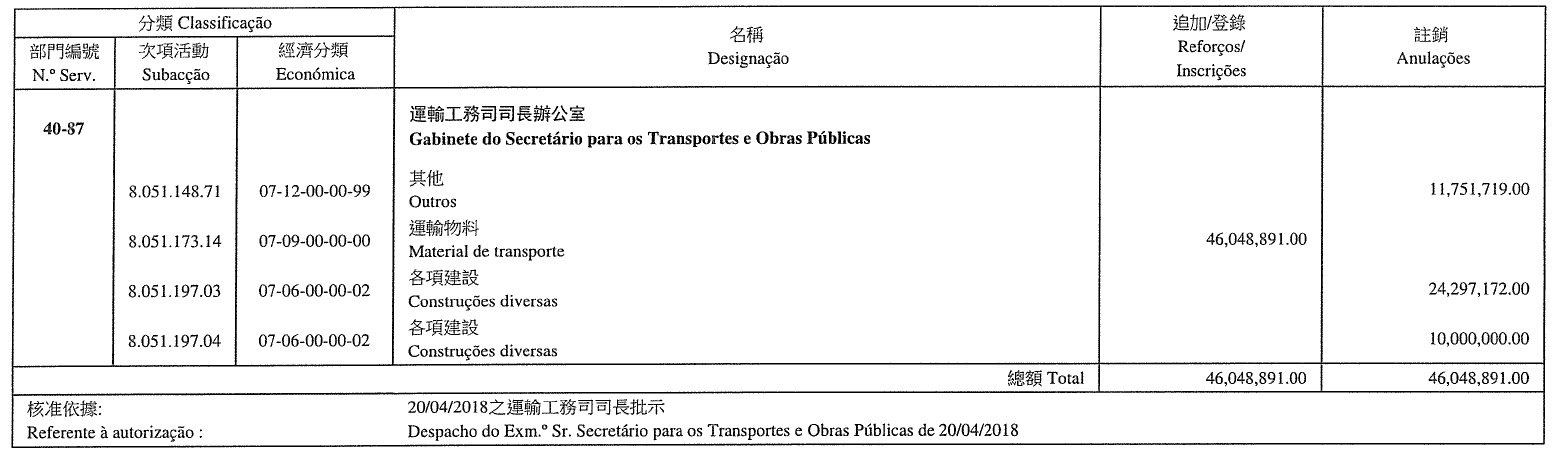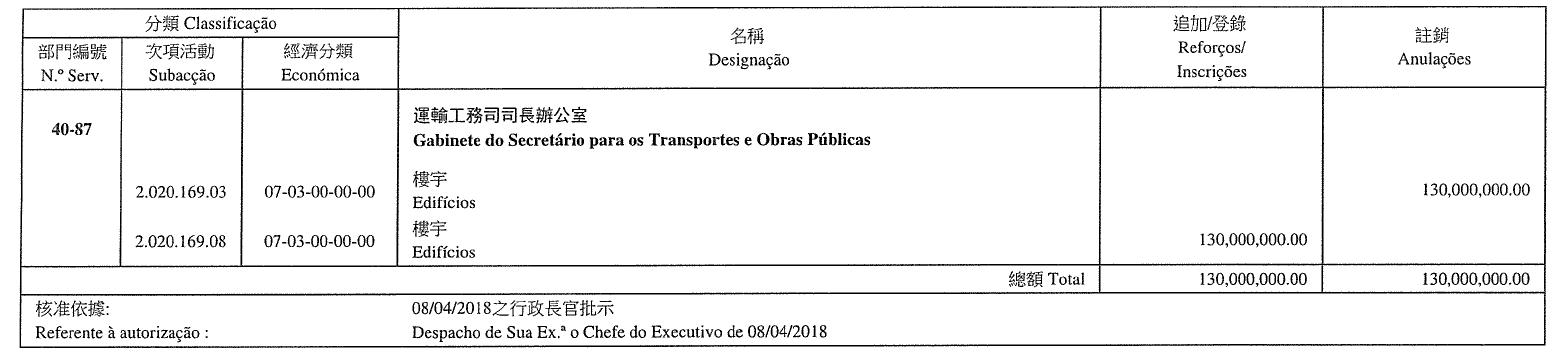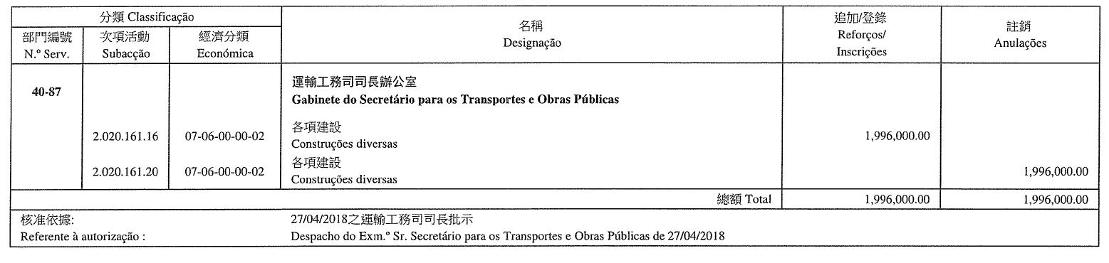 Gabinete para o Desenvolvimento de Infra-estruturas, aos 14 de Maio de 2018. — O Coordenador, substituto, Sam Weng Chon.