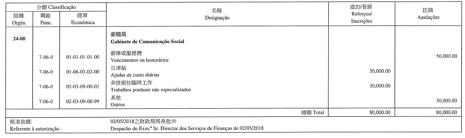 Gabinete do Comissário da Auditoria, aos 15 de Maio de 2018. — A Chefe do Gabinete, Ho Wai Heng.