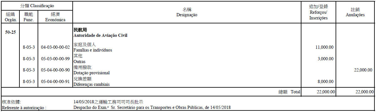 Autoridade de Aviação Civil, aos 16 de Maio de 2018. — O Presidente da Autoridade de Aviação Civil, Chan Weng Hong.