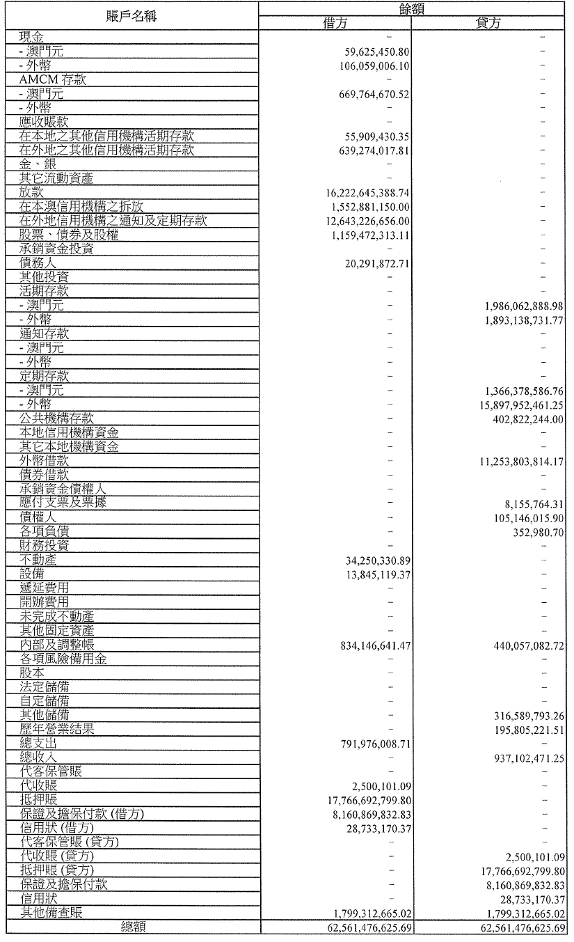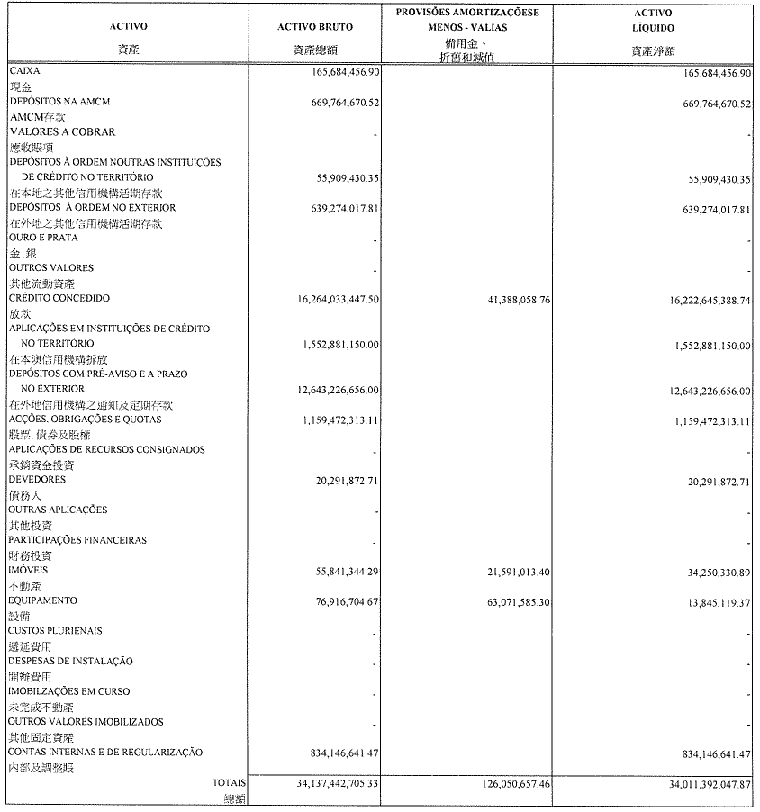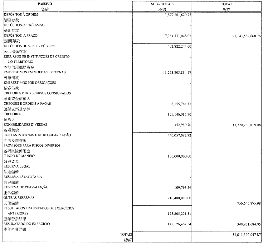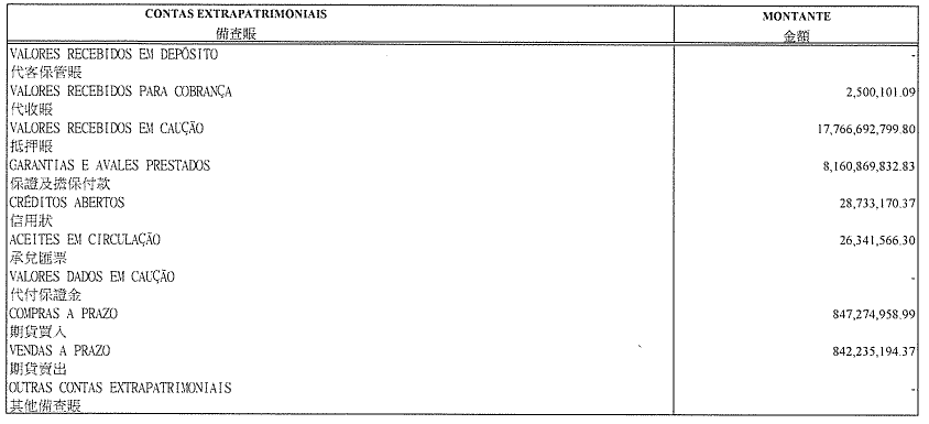 As Outras Reservas incluem uma reserva obrigatória no montante de 216 480 000 Patacas. Porque a sucursal adopta as Normas Macau de Relato Financeiro (“NMRF”) na preparação das suas demonstrações financeiras anuais, as perdas de imparidade com base nas NMRF podem ser inferiores ao nível mínimo de provisões genéricas calculadas de acordo com o Aviso n.º 18/93 da AMCM (o nível mínimo). A referida reserva obrigatória representa, pois, a diferença entre o nível mínimo e as perdas de imparidade nos termos das NMRF (antes dos impostos diferidos de 29 520 000 Patacas). Este mesmo montante, inscrito na linha «Dotações adicionais para provisões conforme RJSF» da Conta de Lucros e Perdas das contas resumidas.