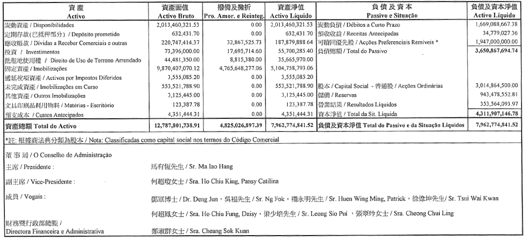 O Conselho Fiscal examinou o relatório de actividades referentes ao exercício de 2017, apresentado pelo Conselho de Administração, bem como o balanço dos activos e passivos sociais, a conta de ganhos e perdas, as variações no património líquido, a demonstração dos fluxos de caixa e outros documentos contabilísticos. Os documentos acima mencionados foram verificados, auditados e certificados pelo escritório de auditoria “KPMG”.