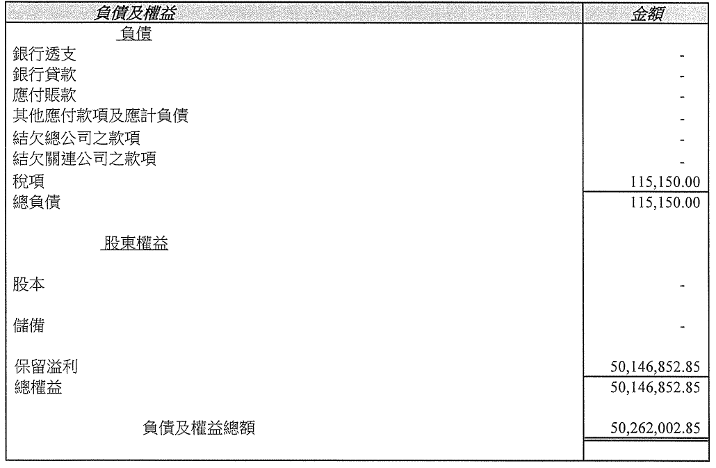 上述已審核的財務報表由於二零一七年十二月三十一日之資產負債表及截至該日止年度之損益表、總公司賬項變動表及現金流量表組成,亦包括重大會計政策概要和其他說明性附註。