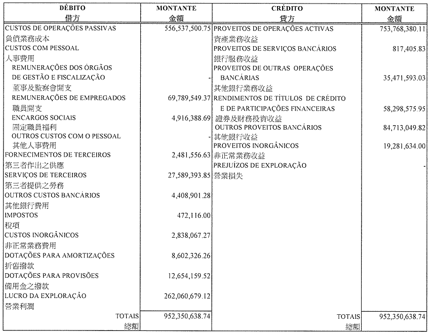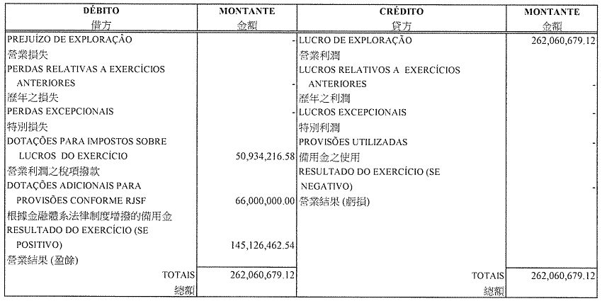 Nota: O Balanço Anual e a Demonstração de Resultados do Exercício foram preparados a partir dos registos contabilísticos auditados.