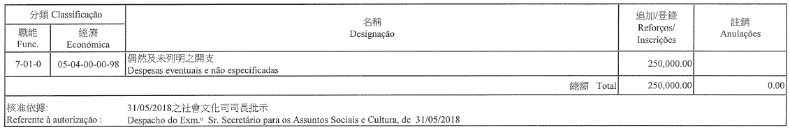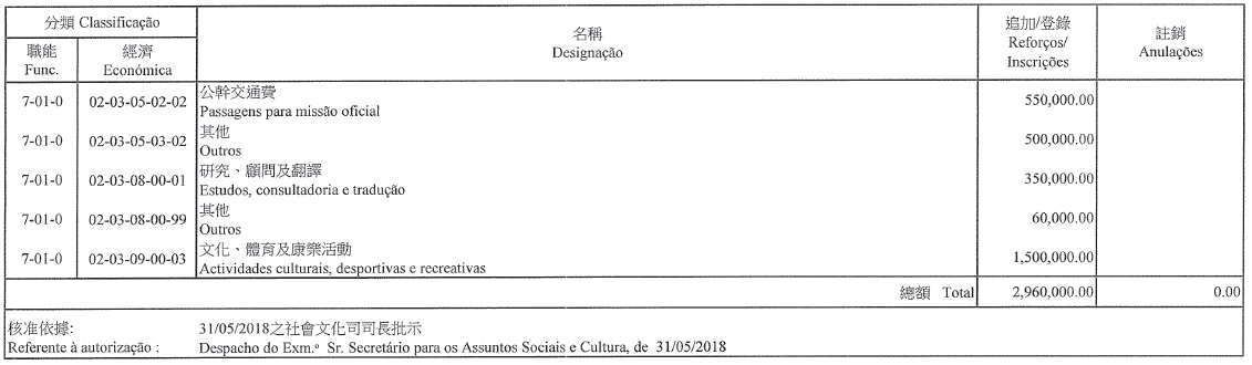 摘錄自社會文化司司長於二零一八年五月三十一日作出的批示: