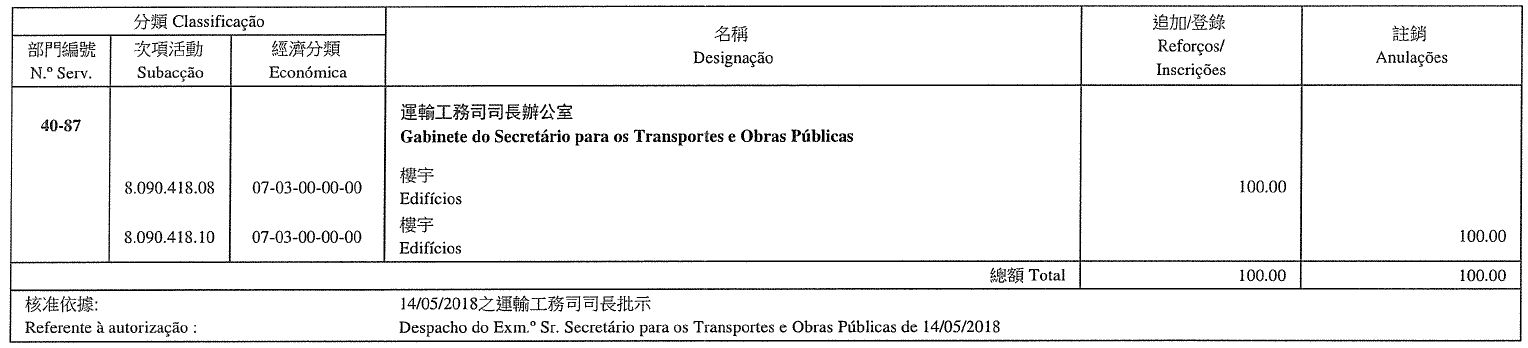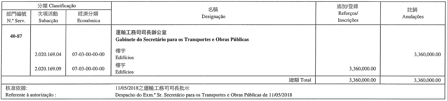 摘錄自運輸工務司司長於二零一八年五月二日作出的批示: