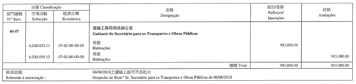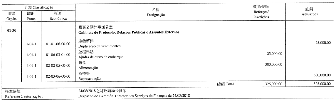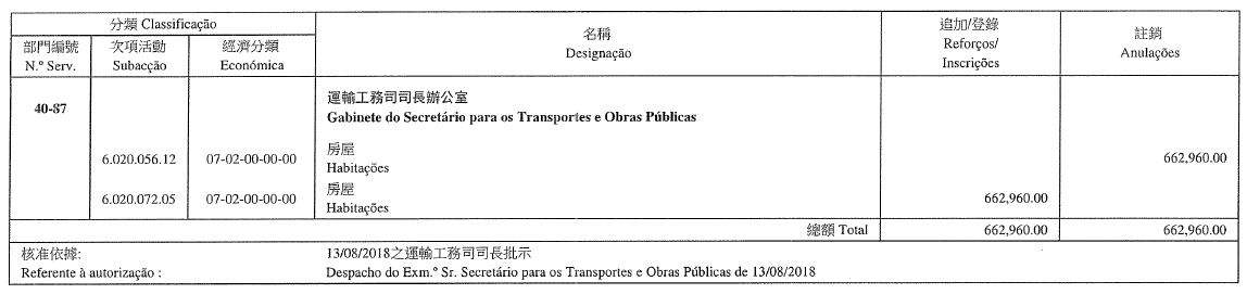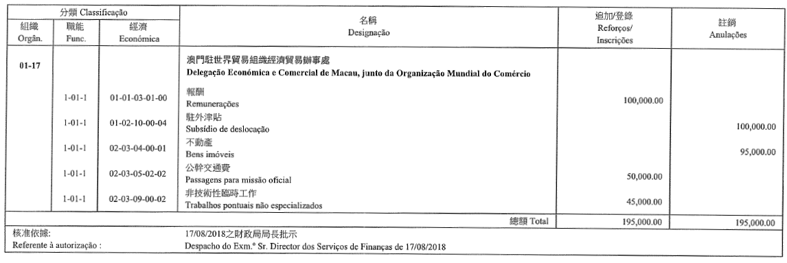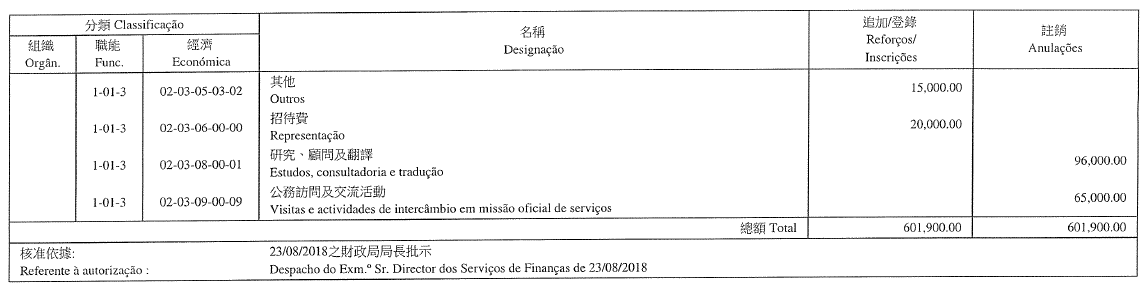 摘錄自本局行政暨財政廳廳長於二零一八年八月二十一日作出的批示: