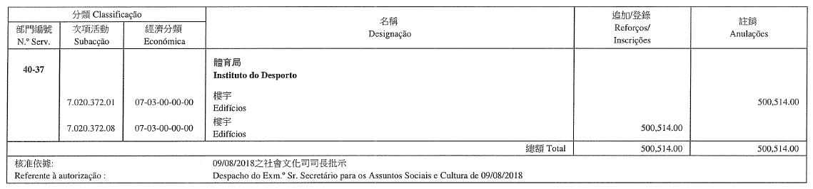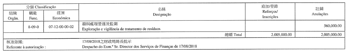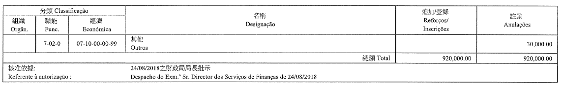 摘錄自本局行政暨財政廳廳長於二零一八年八月十六日作出的批示: