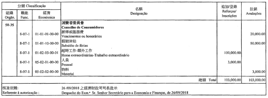 根據第14/2009號法律第十三條第一款(二)項及第四款,以及第12/2015號法律第四條的規定,以附註形式修改陳舒巍、張雅麗及盧美莉在本署擔任職務的不具期限的行政任用合同第三條款,晉階為第二職階首席高級技術員,薪俸點為565點,自二零一八年九月二十二日起生效。