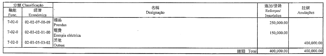 根據第12/2015號法律第四條第二款,經第4/2017號法律修改的第14/2009號法律第十四條第一款(二)項、第二款、第三款及第四款,以及經第23/2017號行政法規修改的第14/2016號行政法規第二條(三)項及第五條的規定,以附註形式修改陳殷桁、林瑞杏、梁素茵及余麗莎在本基金擔任職務的不具期限的行政任用合同第三條款,自公佈日起任用為技術輔導員職程第一職階特級技術輔導員,薪俸點為400點。