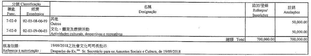按照社會文化司司長於二零一八年八月六日作出之批示: