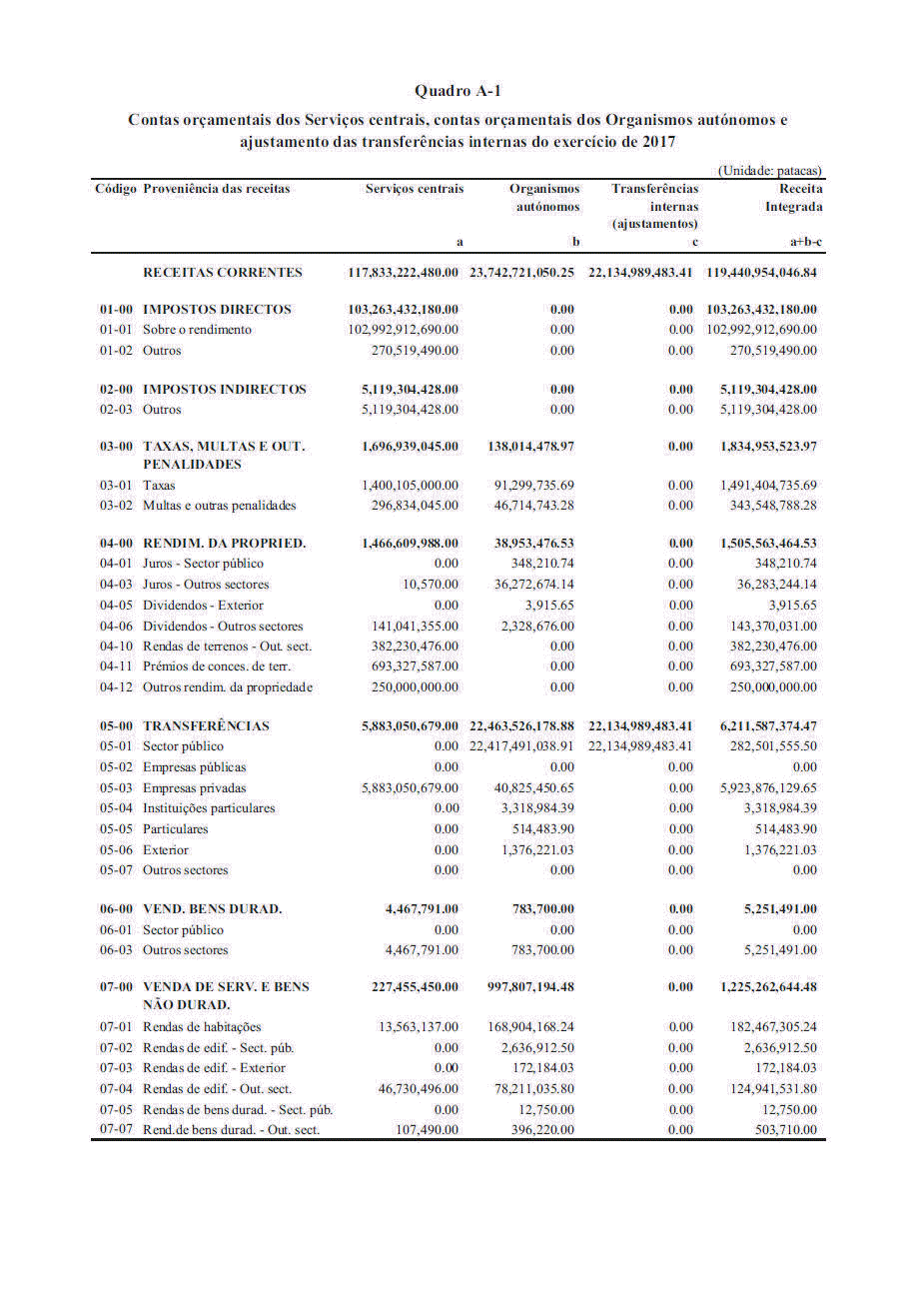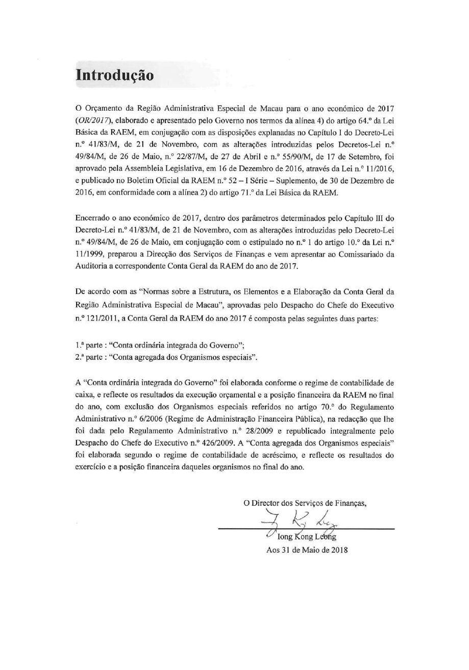 Conta Geral da RAEM do ano 2017