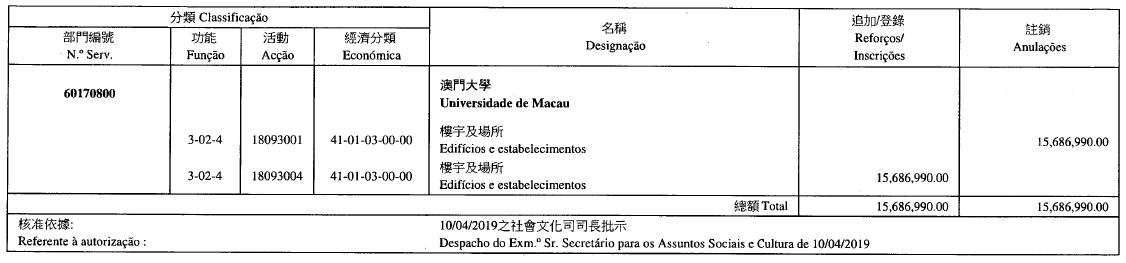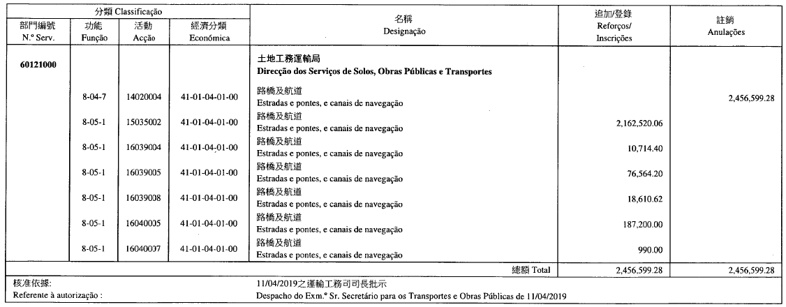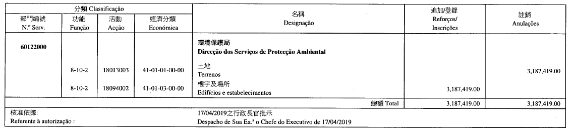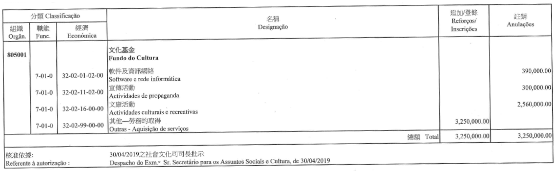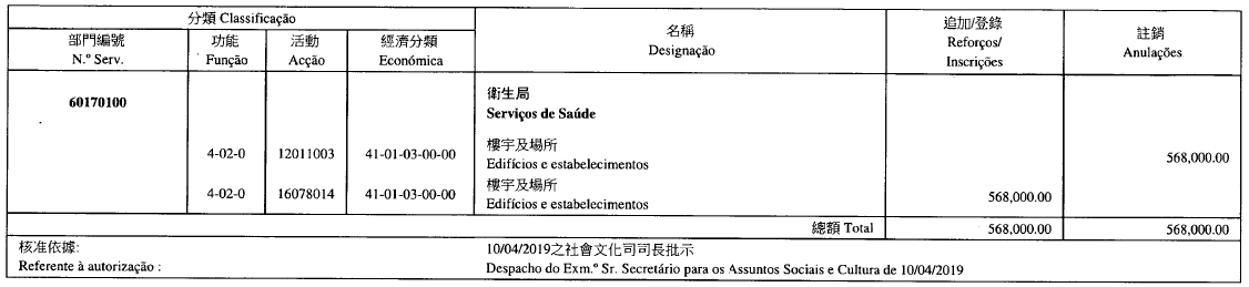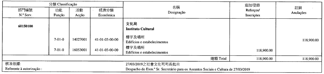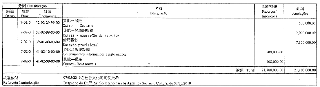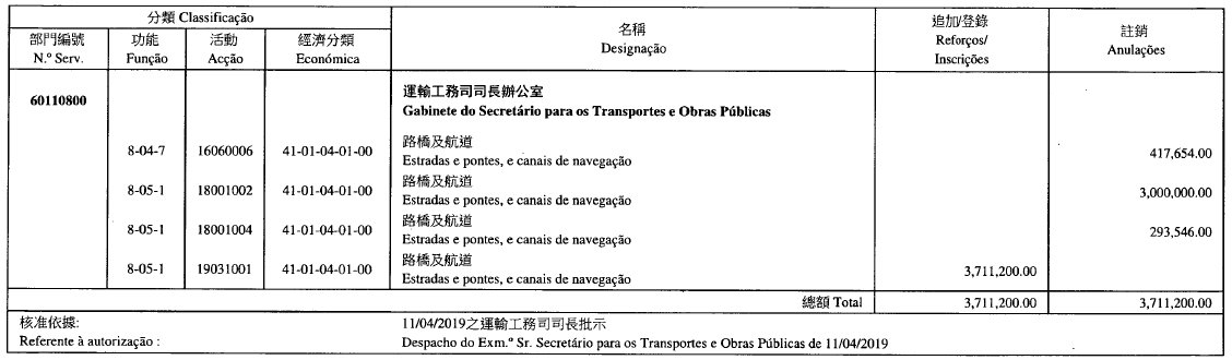 摘錄自本局行政暨財政廳廳長於二零一九年四月二十四日作出的批示: