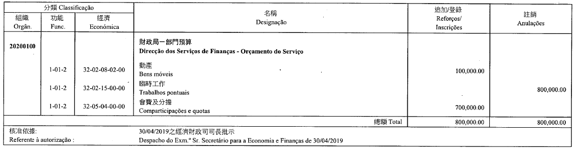 摘錄自本局行政暨財政廳廳長於二零一九年四月二十九日作出的批示: