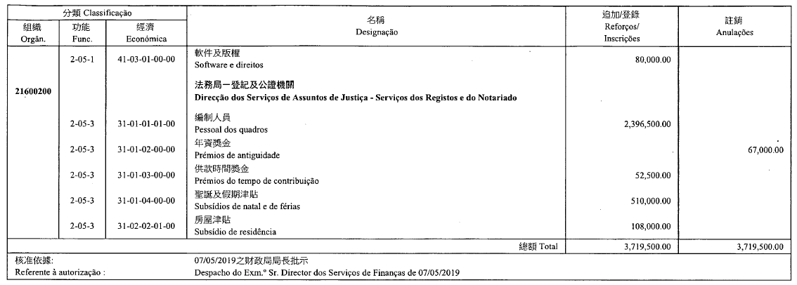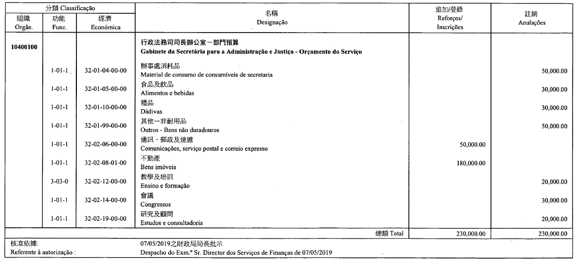 按行政法務司司長於二零一九年五月二日作出之批示: