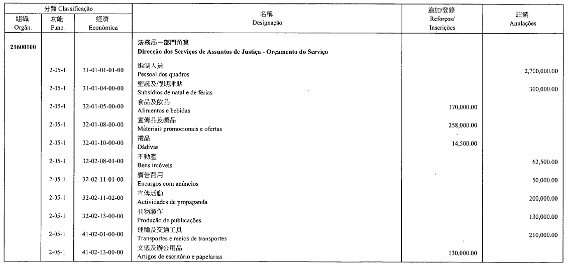 根據經十二月十九日第39/2011號行政法規重新公佈的三月六日第19/2000號行政法規第十三條第一款、經五月二十二日第4/2017號法律修改的八月三日第14/2009號法律第十四條第一款(一)項,以及八月十七日第12/2015號法律第四條的規定,本辦公室第三職階特級技術輔導員陳碧珊的不具期限的行政任用合同以附註形式修改該合同第三條款,晉級為第一職階首席特級技術輔導員,薪俸點450。